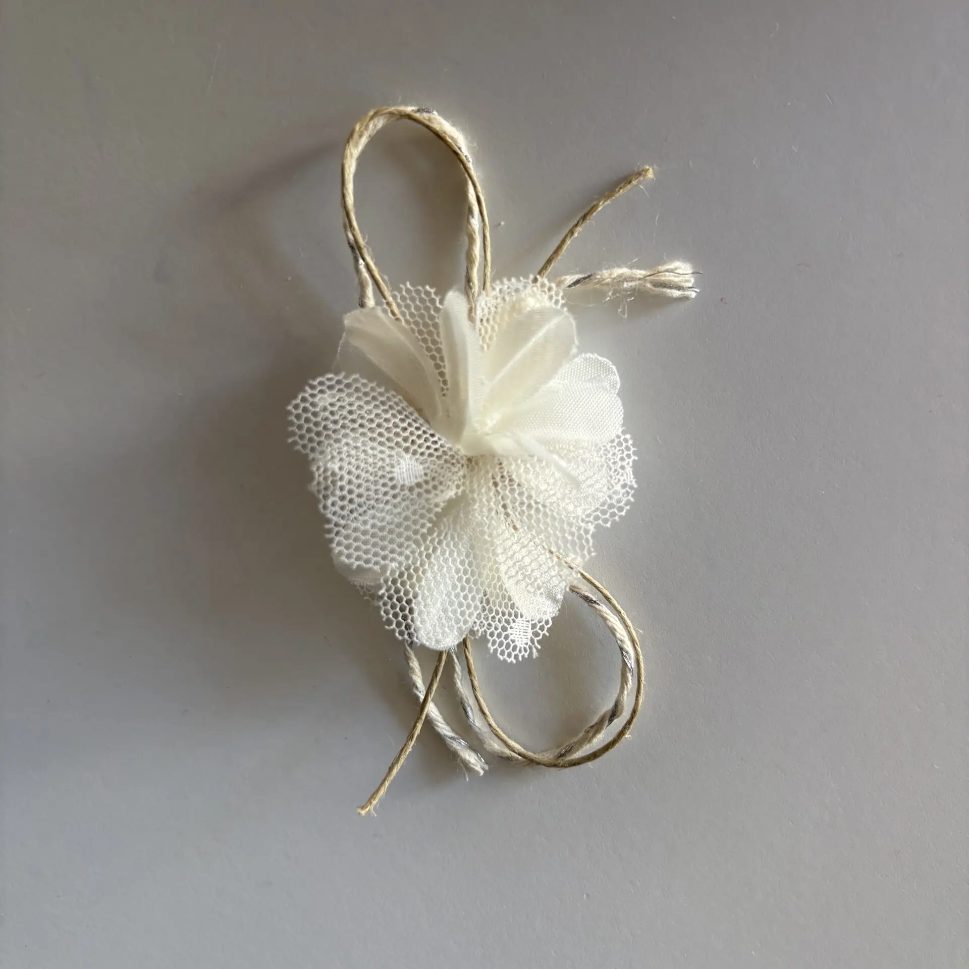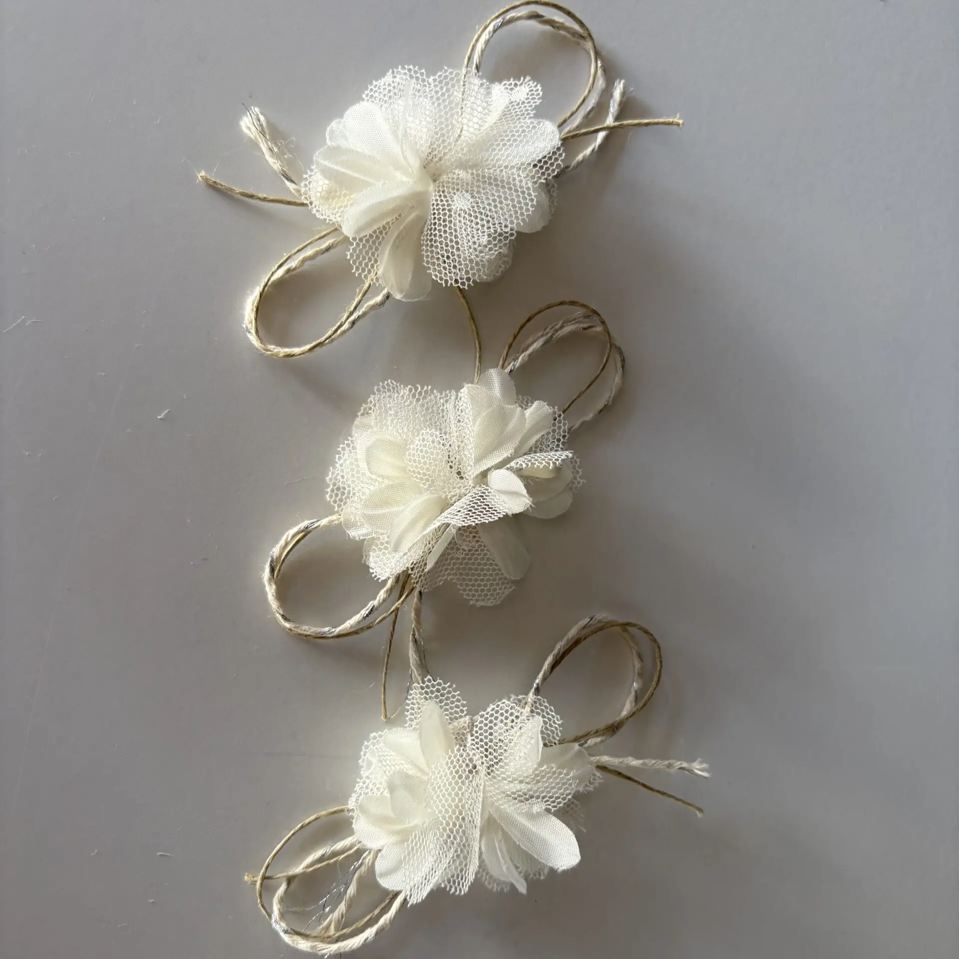 El accesorio floral blanco es un delicado complemento perfecto para decorar calzado, bolsos o incluso para utilizar como detalle en peinados y complementos. Su diseño con flor de tela y tul aporta un estilo romántico y elegante, ideal para ocasiones especiales.