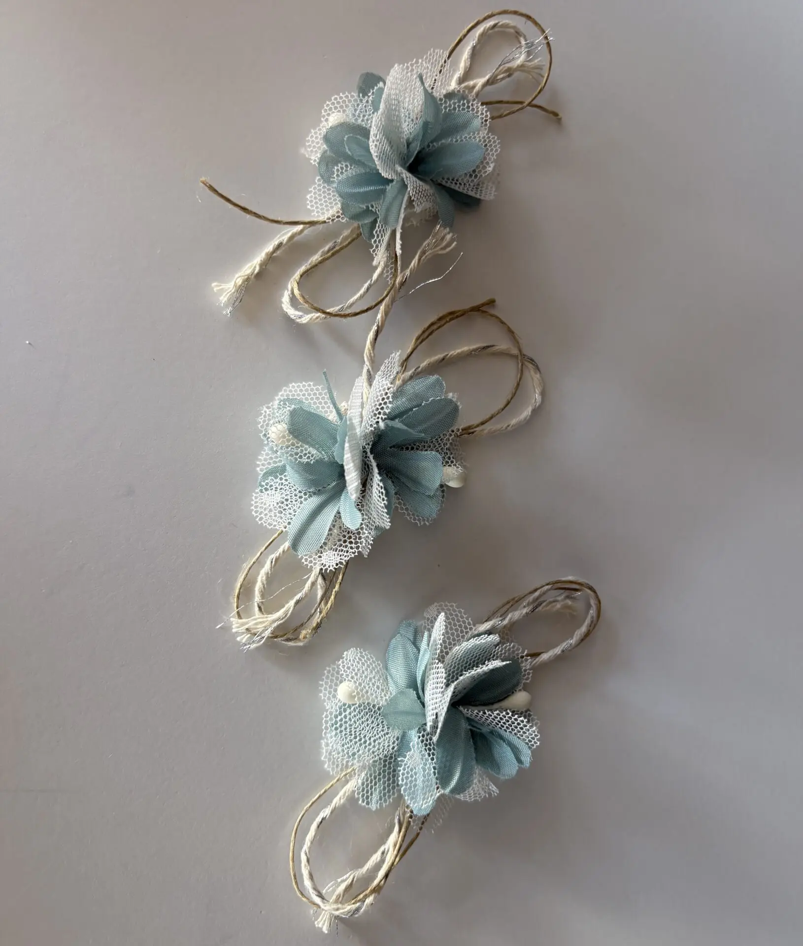 Detalles: Tul blanco y cordones decorativos