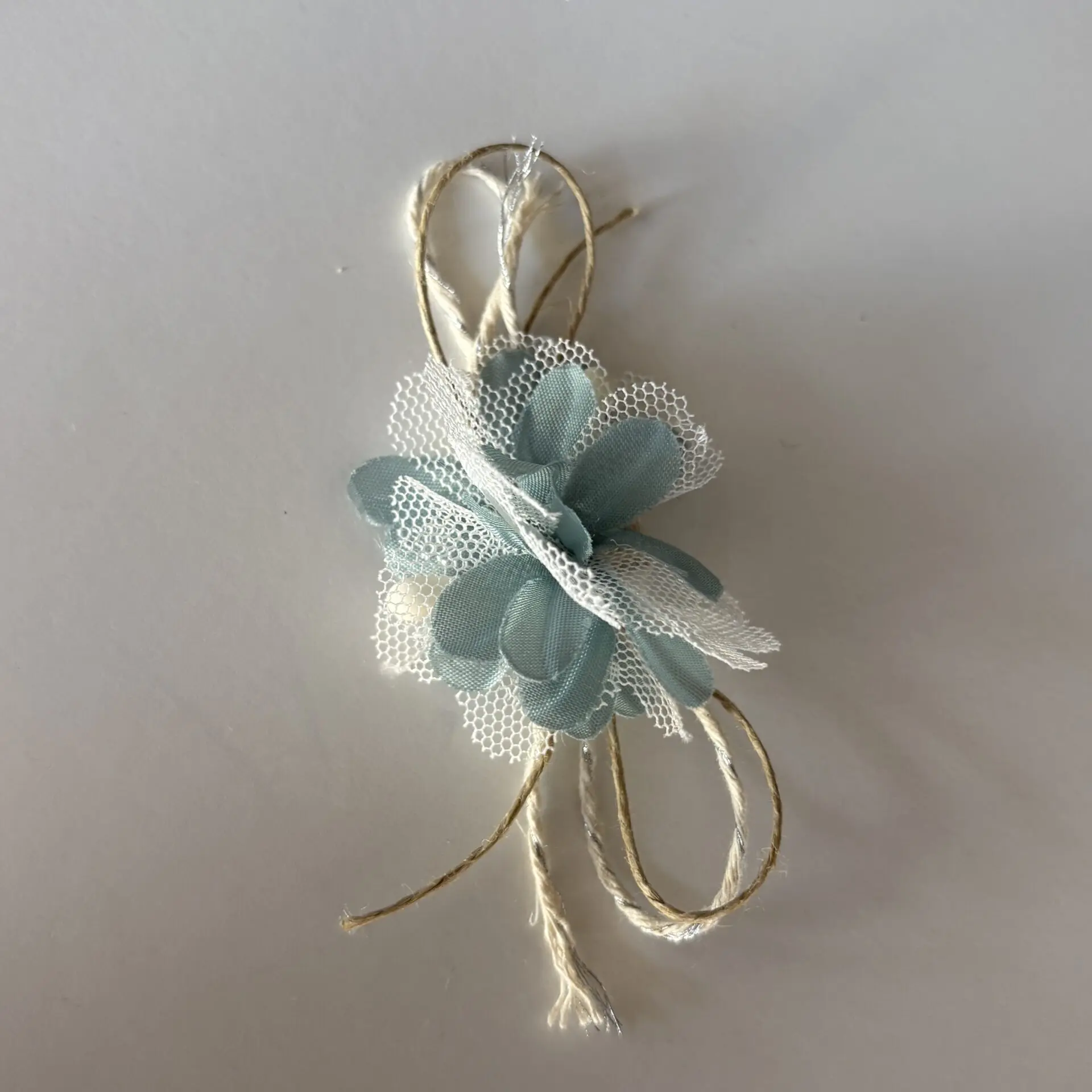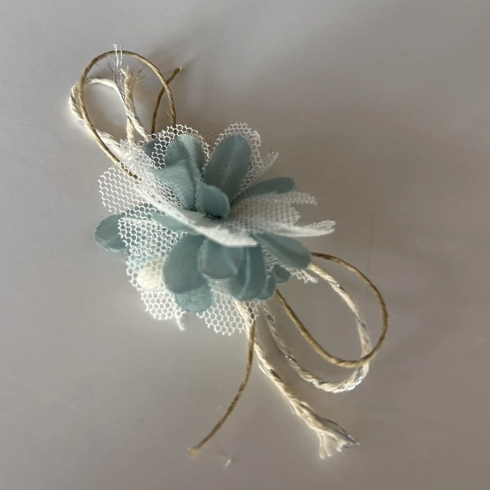 El accesorio floral verde es un complemento delicado y original que aporta un toque fresco y elegante a cualquier calzado o accesorio. Su diseño combina pétalos de tela en tono verde suave con tul blanco, creando un efecto ligero y romántico.