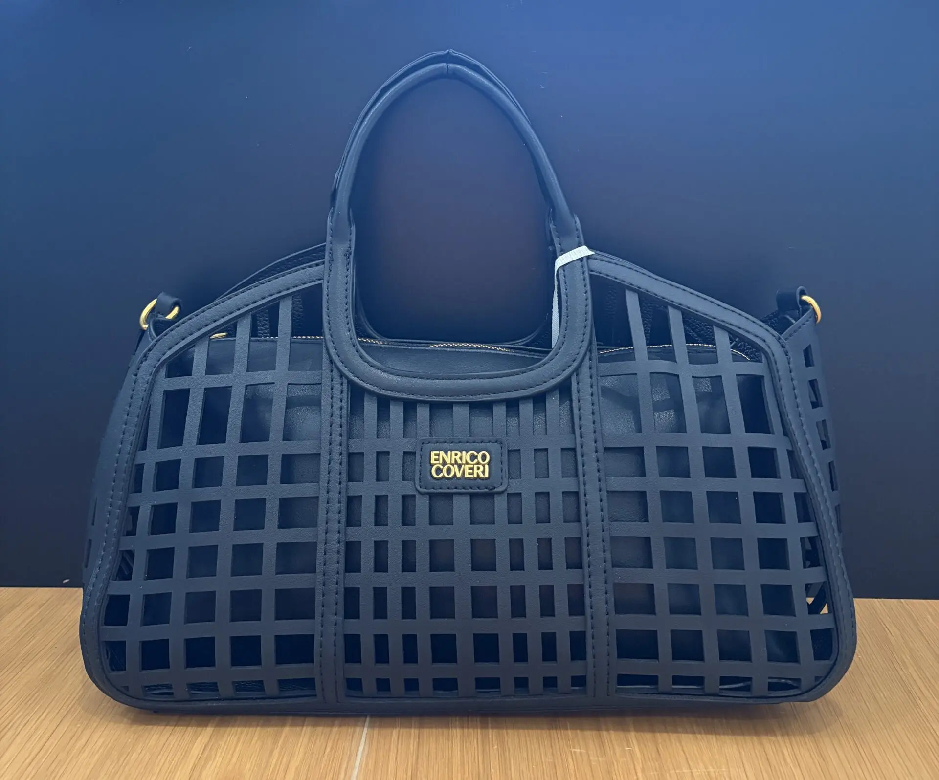 El bolso negro troquelado Enrico Coveri es una pieza elegante y sofisticada, perfecta para completar cualquier look con un toque moderno. Su color negro, clásico y versátil, lo convierte en un imprescindible de fondo de armario, ideal tanto para el día a día como para ocasiones especiales.