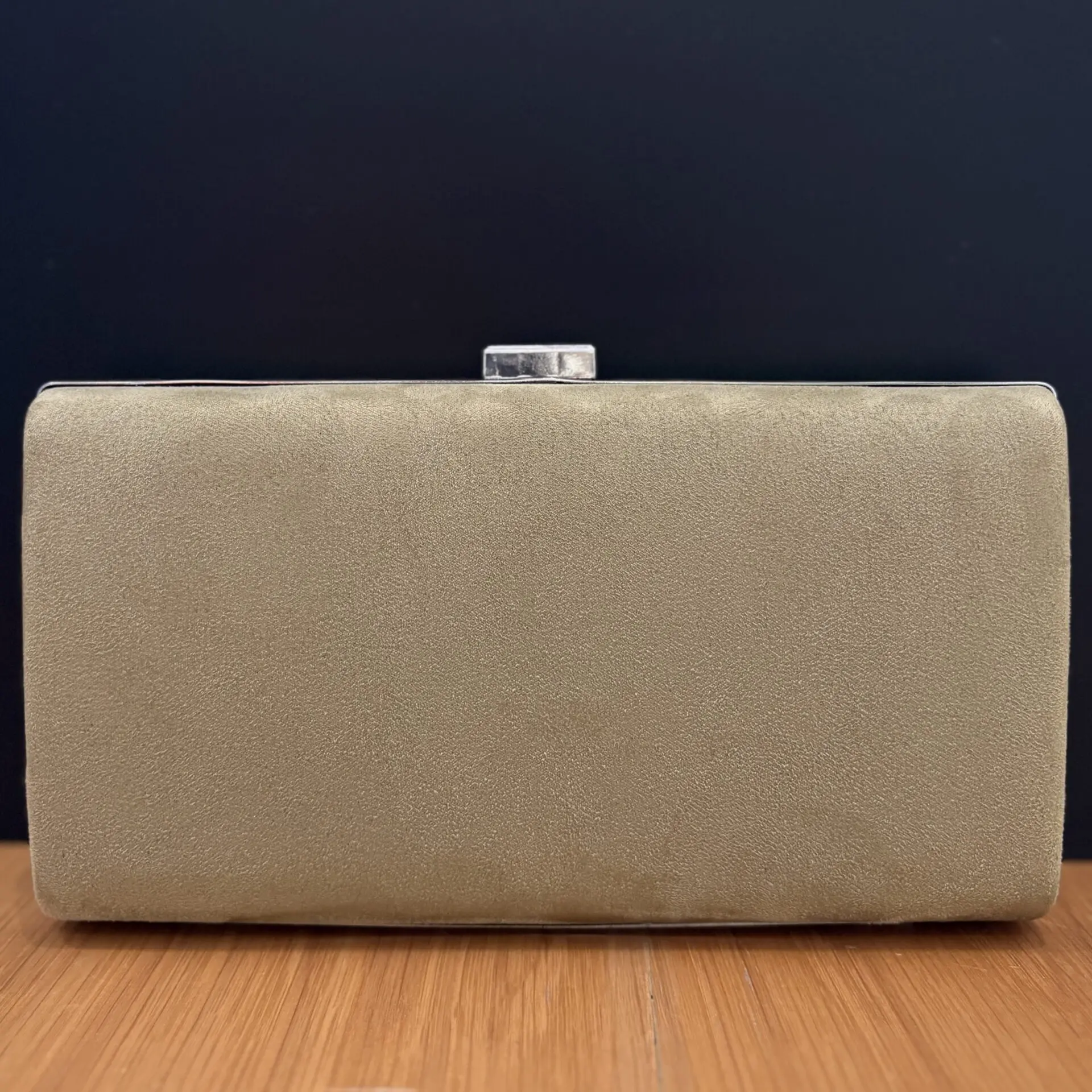 Bolso clutch verde elegante y minimalista, ideal para eventos y celebraciones. Medidas: 21,5 × 11,5 cm.