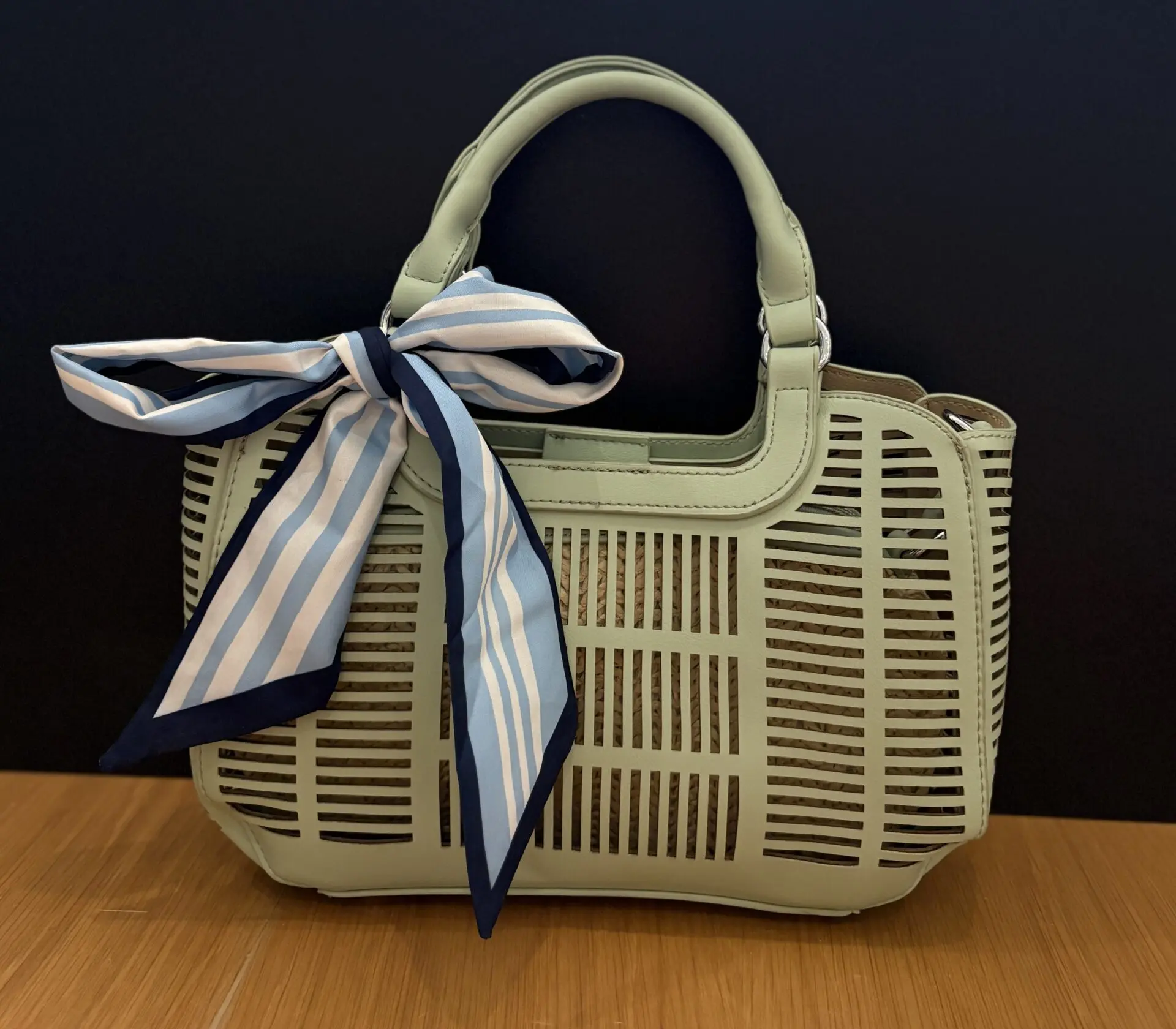 El bolso verde troquelado con pañuelo decorativo es el complemento perfecto para quienes buscan estilo y frescura en un mismo accesorio. Su bonito tono verde suave aporta un aire moderno y original, ideal para completar tus looks de temporada.