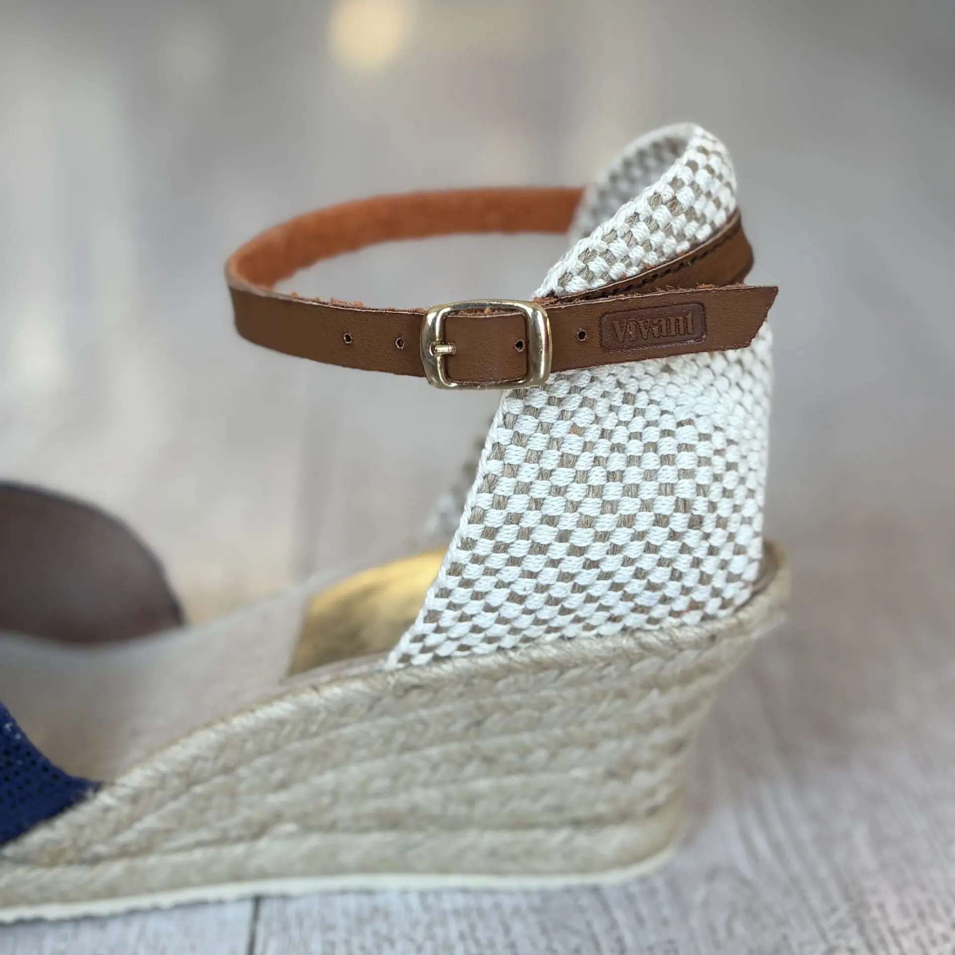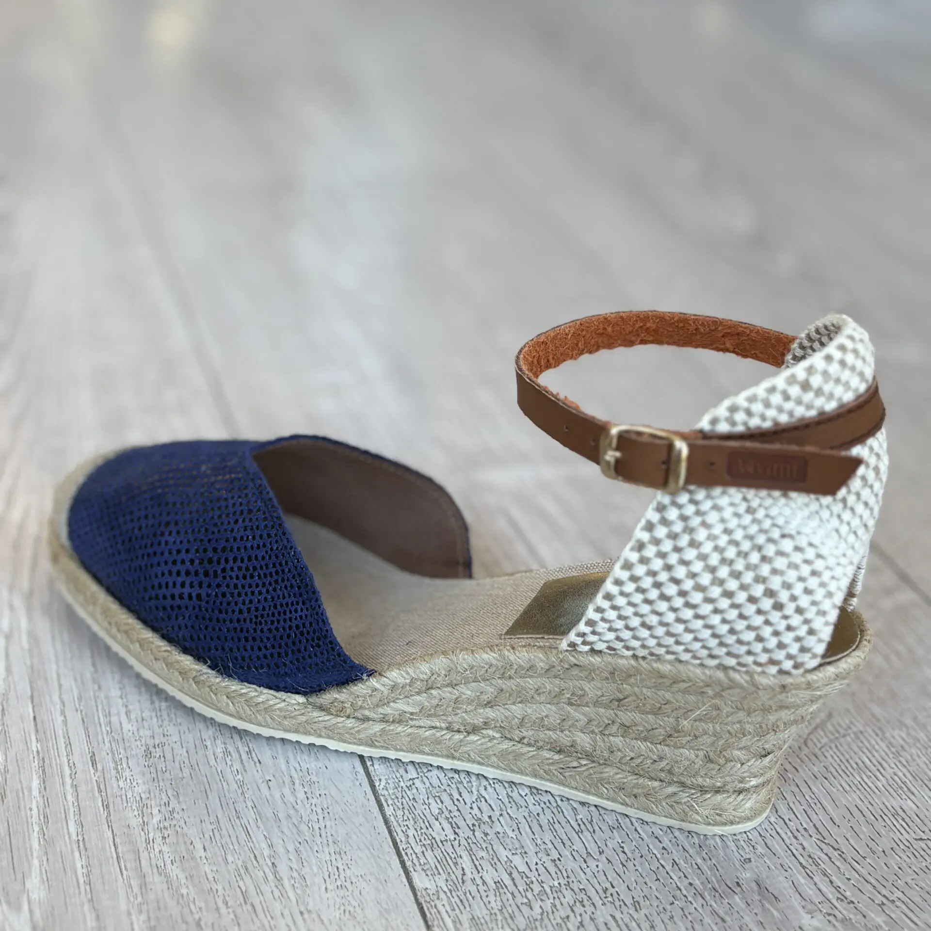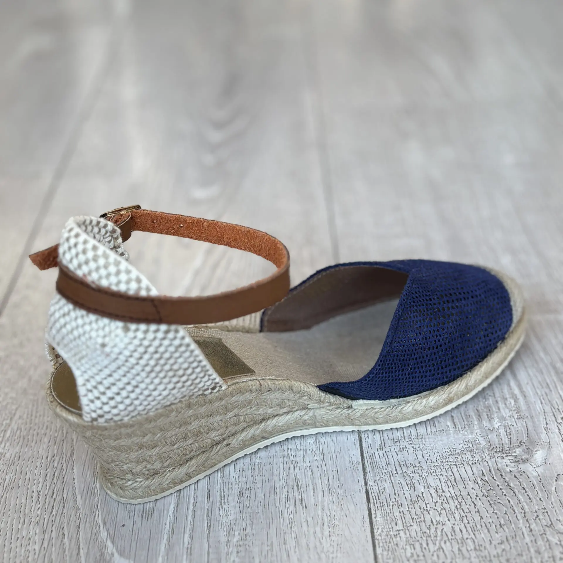 Cuña de esparto azul marino, cómoda, elegante y muy fácil de combinar.