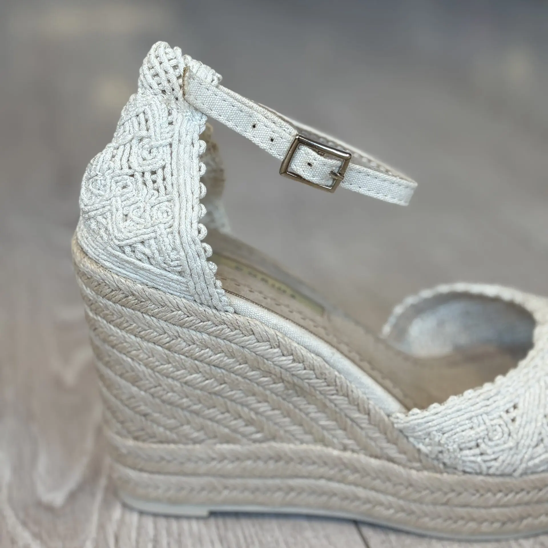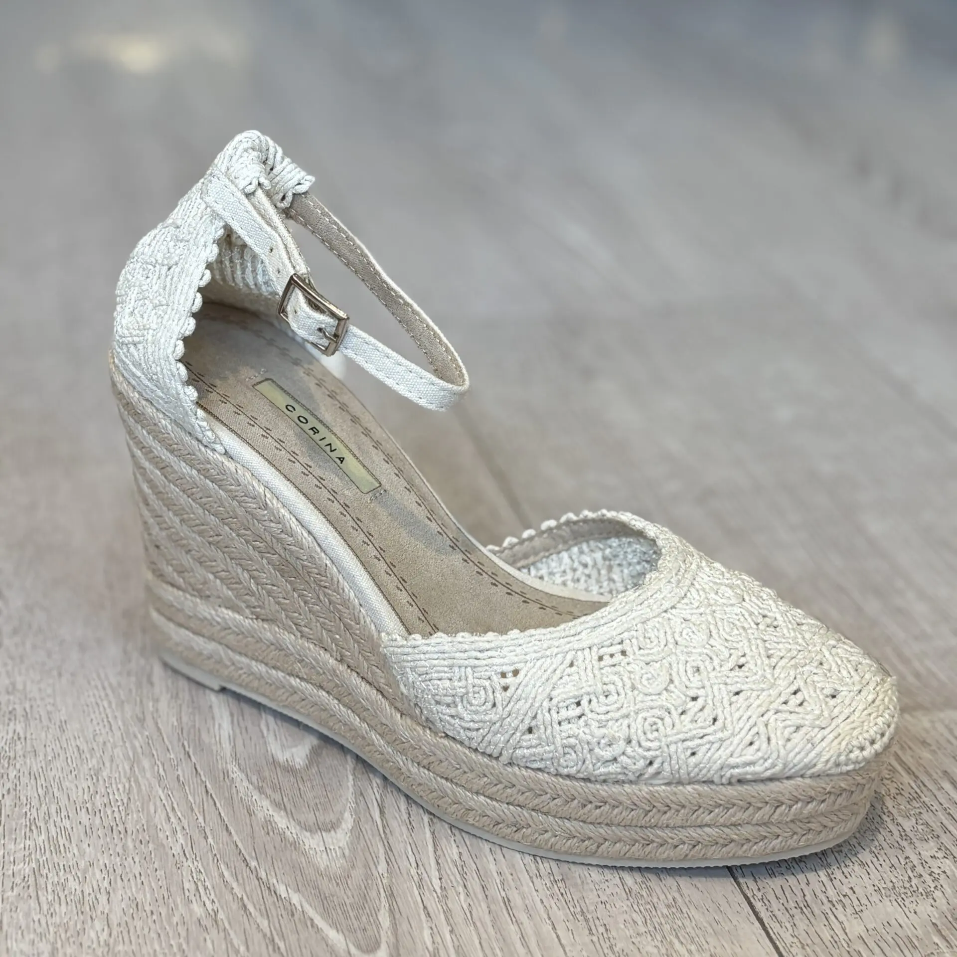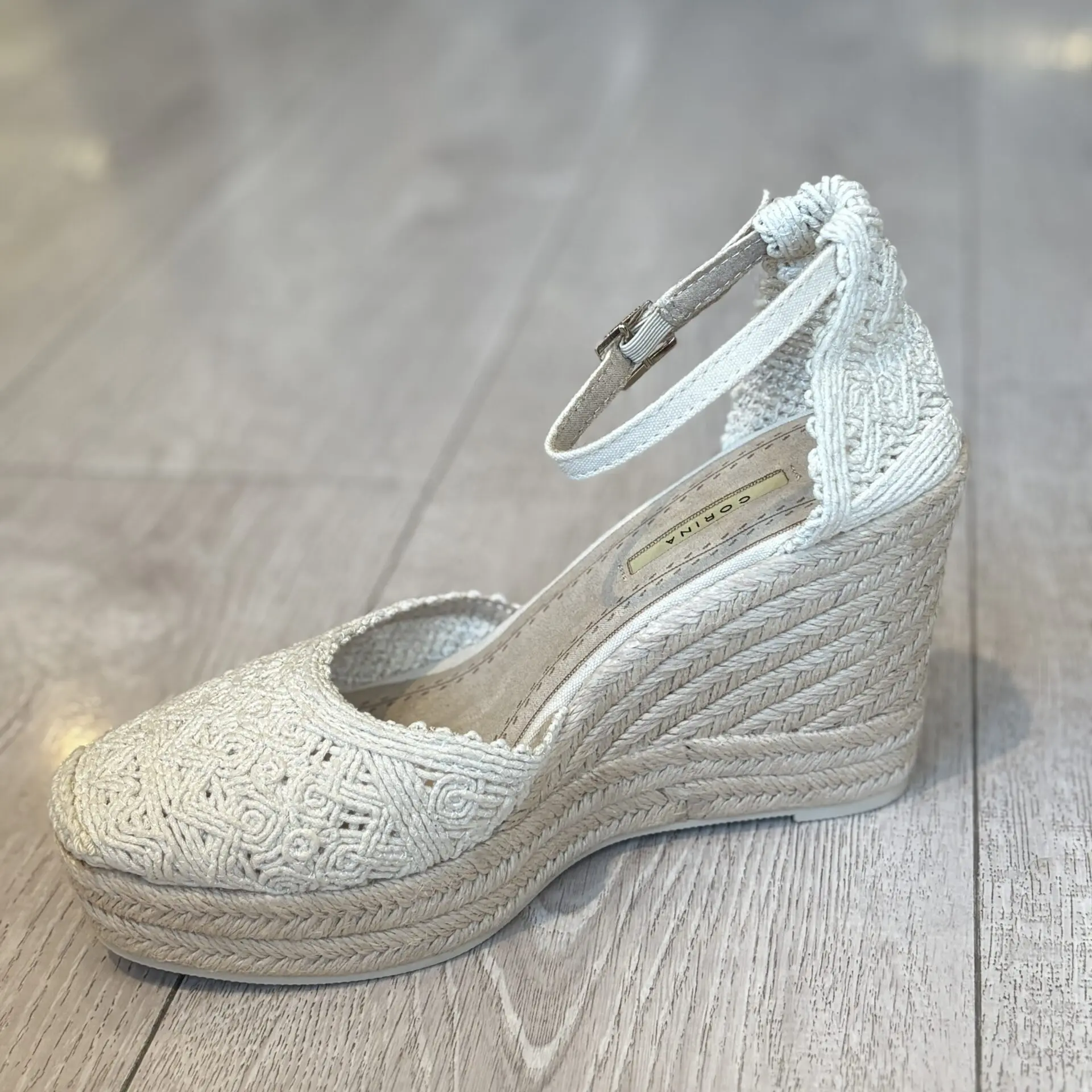 La cuña de esparto Corina para mujer en color beige combina elegancia, comodidad y estilo atemporal.