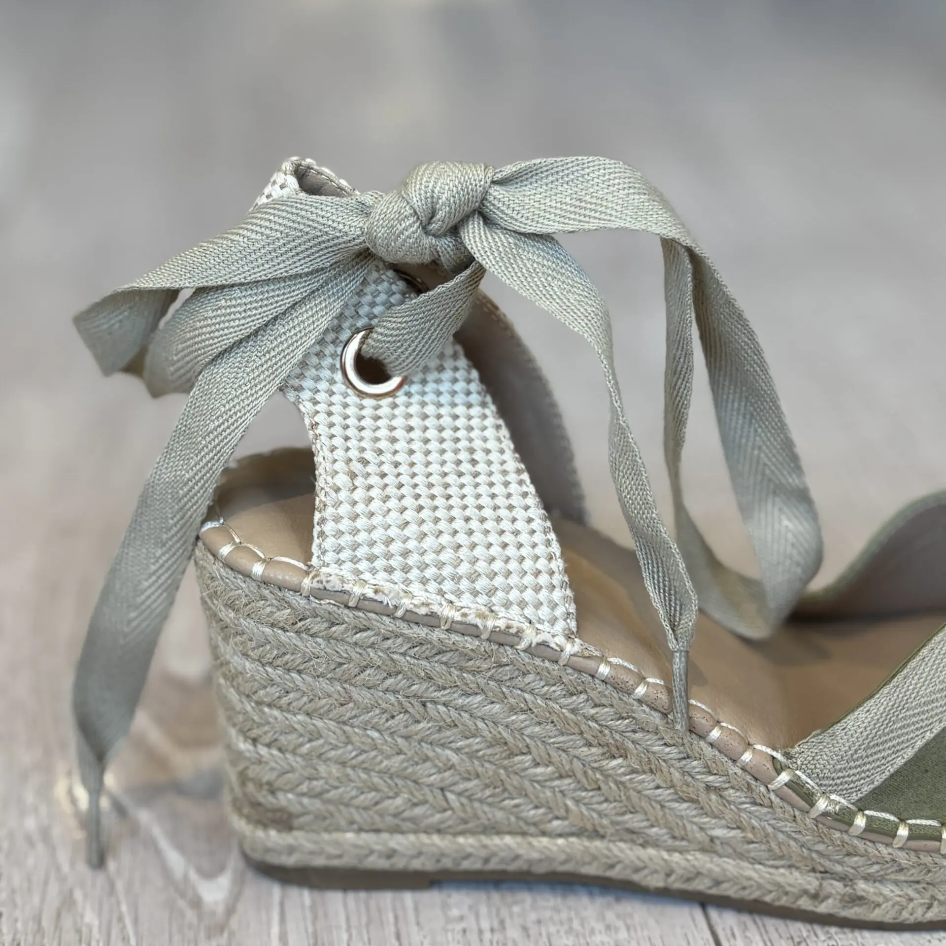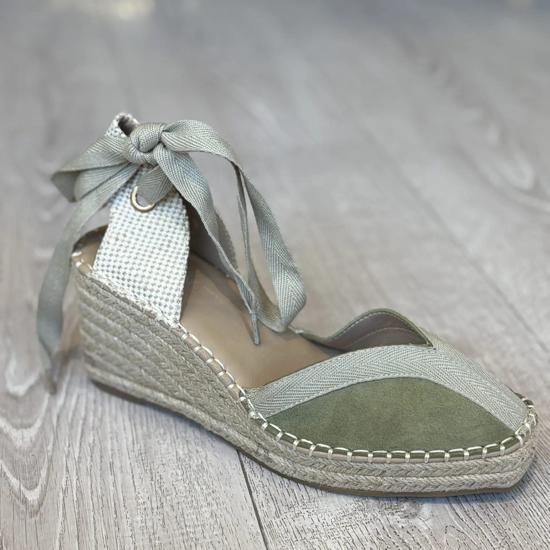 La cuña de esparto para mujer en color verde es una opción fresca, cómoda y muy favorecedora para el verano.