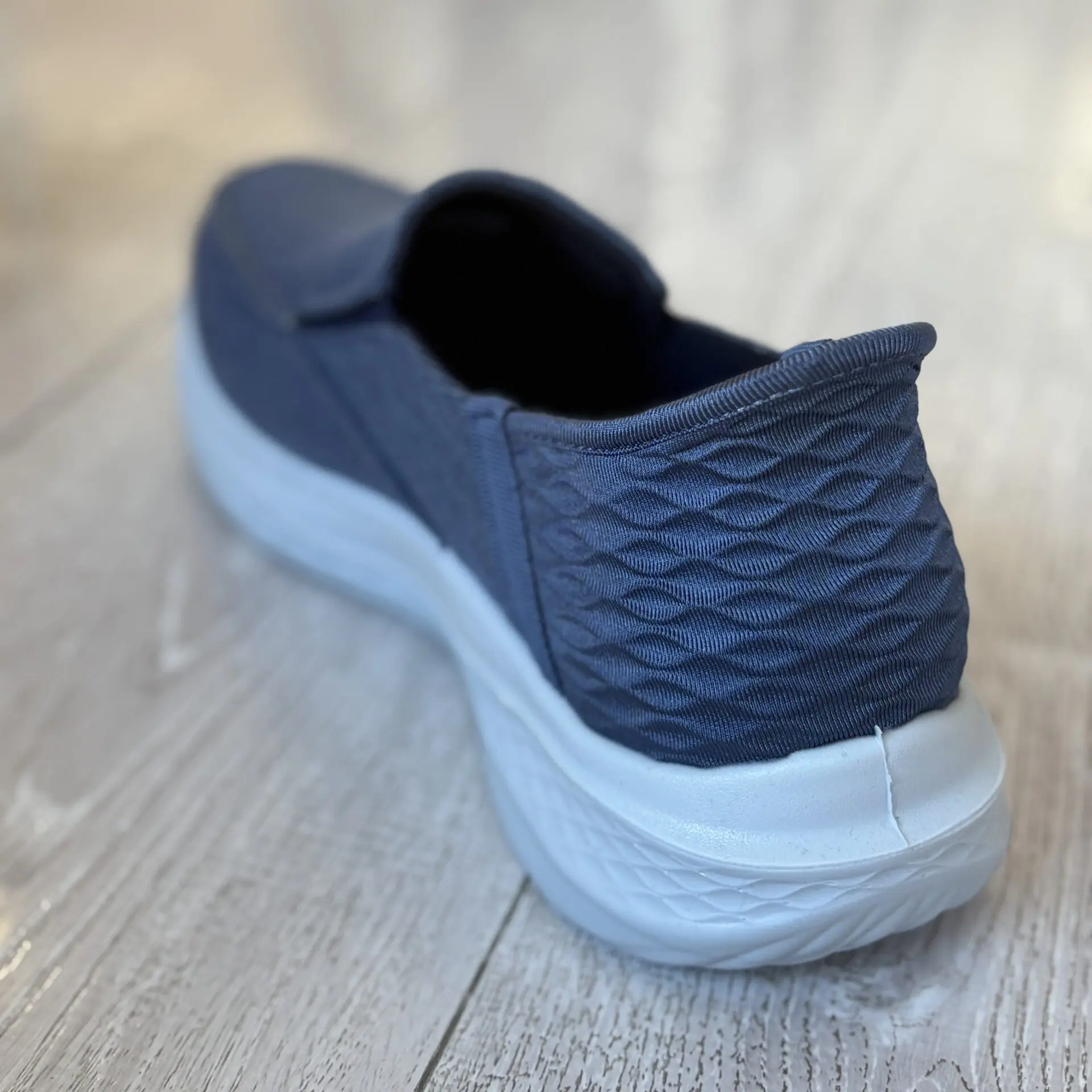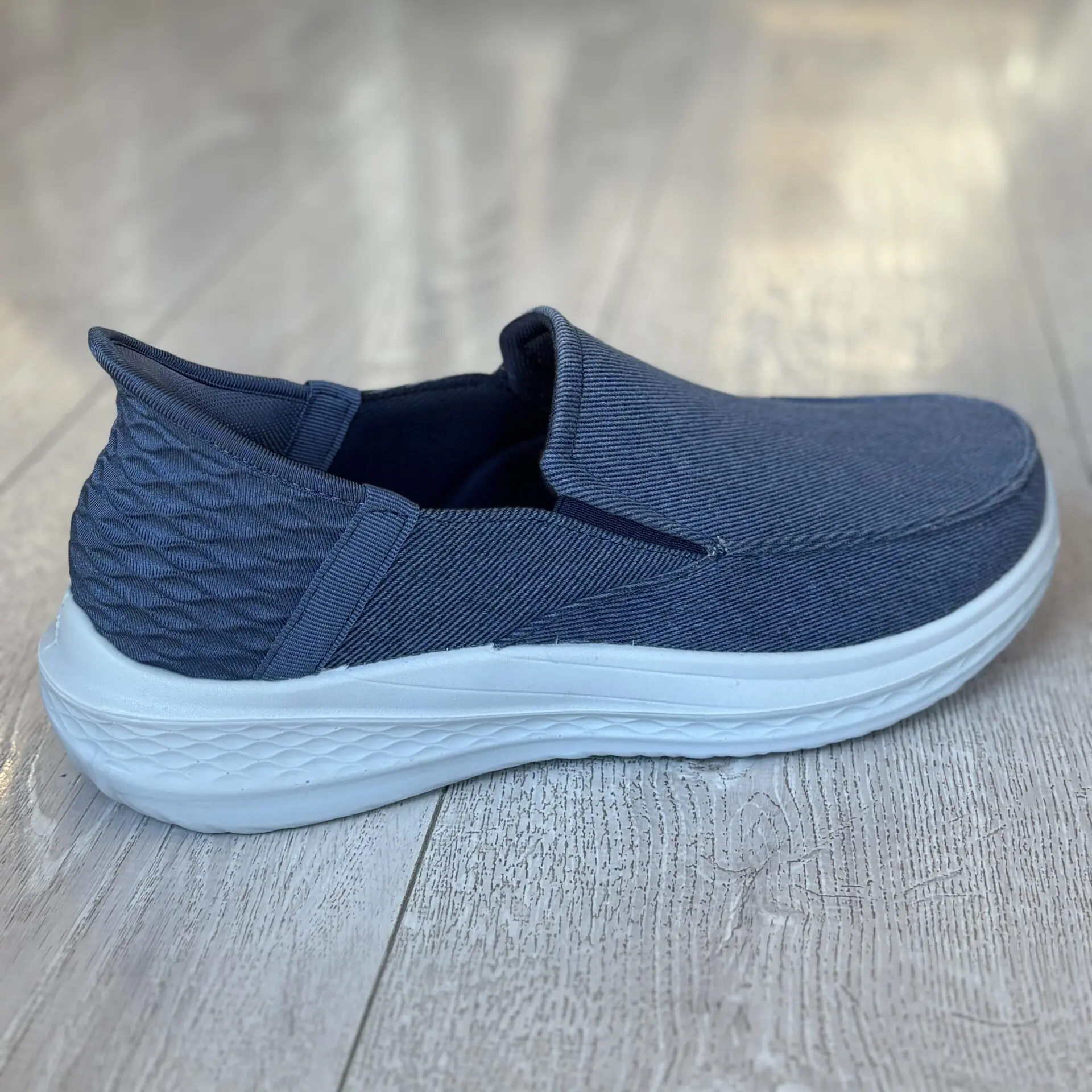 La zapatilla cómoda tipo mocasín en color marino es perfecta para quienes buscan máxima comodidad y facilidad al calzar 👟💙