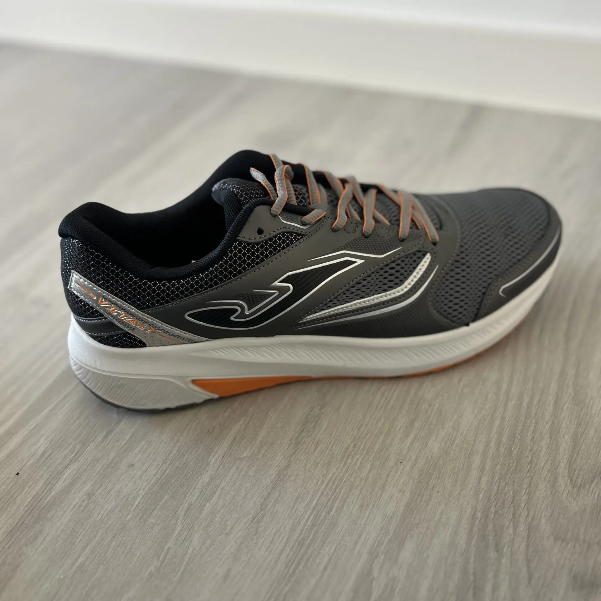 Zapatillas deportivas Joma en color gris, con detalles en negro y naranja, diseñadas para ofrecer comodidad, ligereza y una pisada estable en el día a día. Su diseño moderno y deportivo las convierte en una opción ideal tanto para caminar como para realizar actividad deportiva ligera.