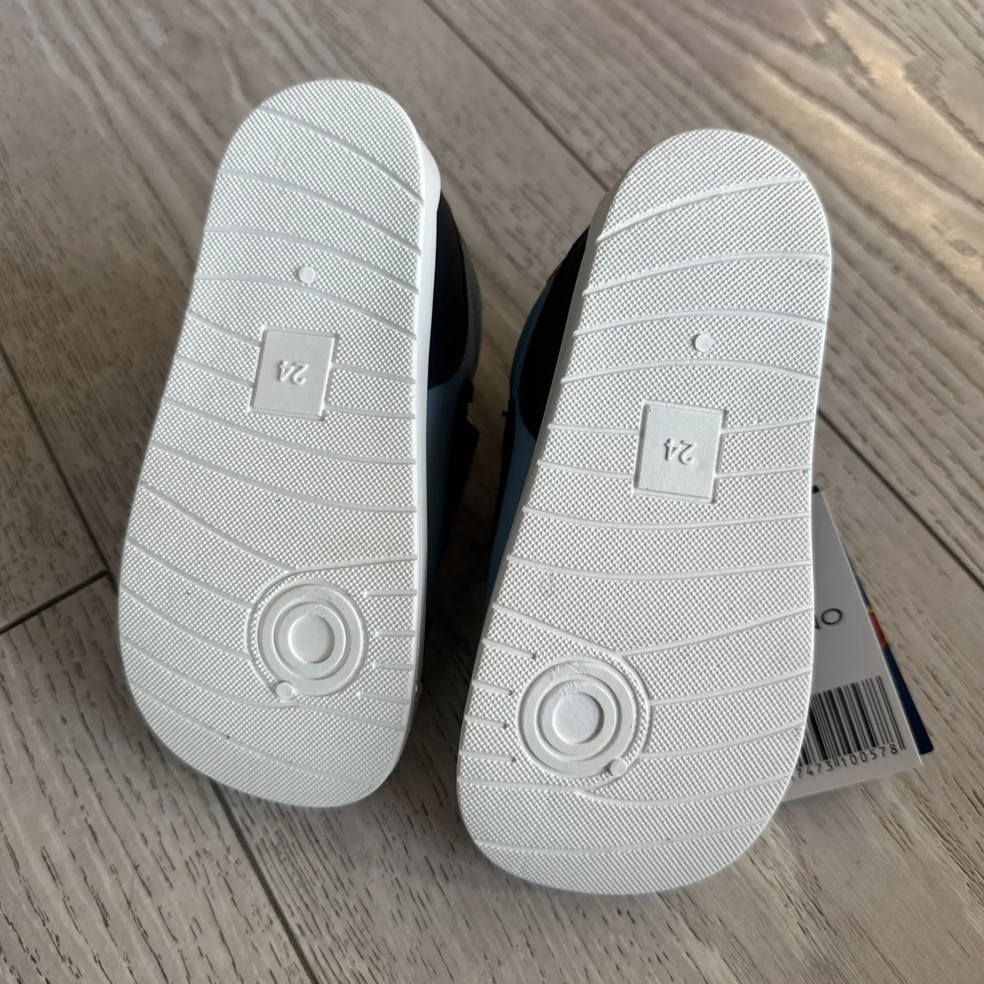Estas zapatillas respetuosas infantiles están diseñadas para cuidar los pies de los más pequeños 👶. Su diseño en azul marino y celeste, junto con la puntera reforzada blanca, las convierte en la opción ideal para la guarde, el cole o sus primeras aventuras.