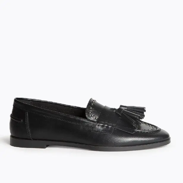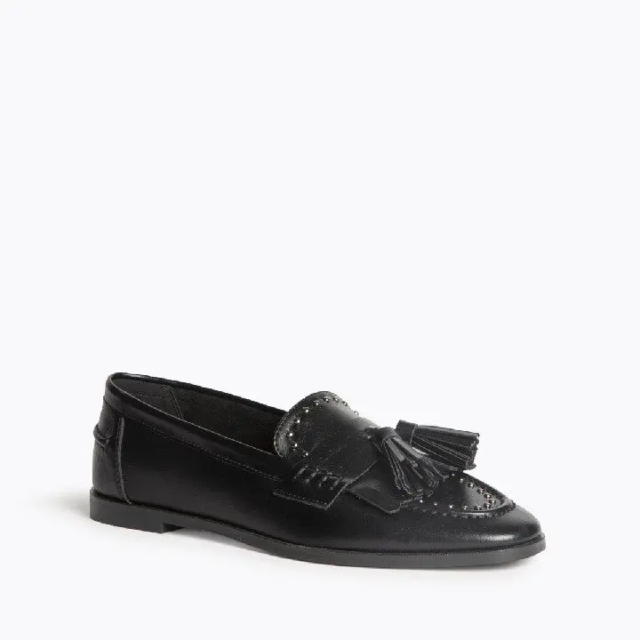 Mocasín clásico en color negro con acabado en piel sintética, detalle de borlas y diseño troquelado en la puntera. Su estilo atemporal lo convierte en un básico imprescindible en cualquier armario, perfecto para combinar con looks de oficina, trajes formales o incluso con vaqueros para un aire más casual. Su construcción ligera y cómoda garantiza que puedas llevarlos durante todo el día con elegancia y estilo.