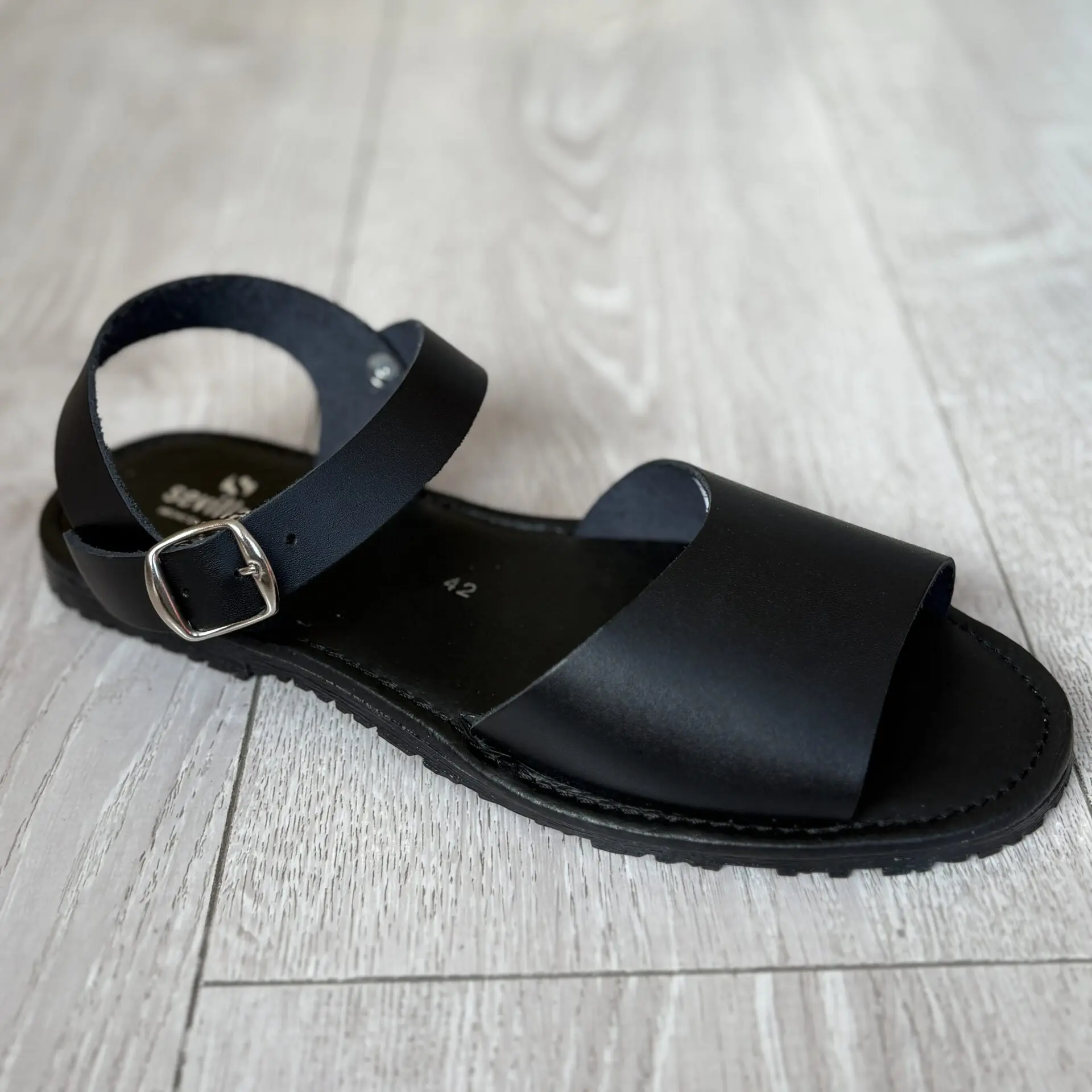 Su diseño clásico en color negro la convierte en un básico imprescindible para procesiones, eventos y celebraciones, aportando un estilo discreto y sofisticado. Incorpora una pala delantera amplia que sujeta el pie con suavidad, junto a una tira trasera con cierre de hebilla que permite un ajuste seguro y firme.