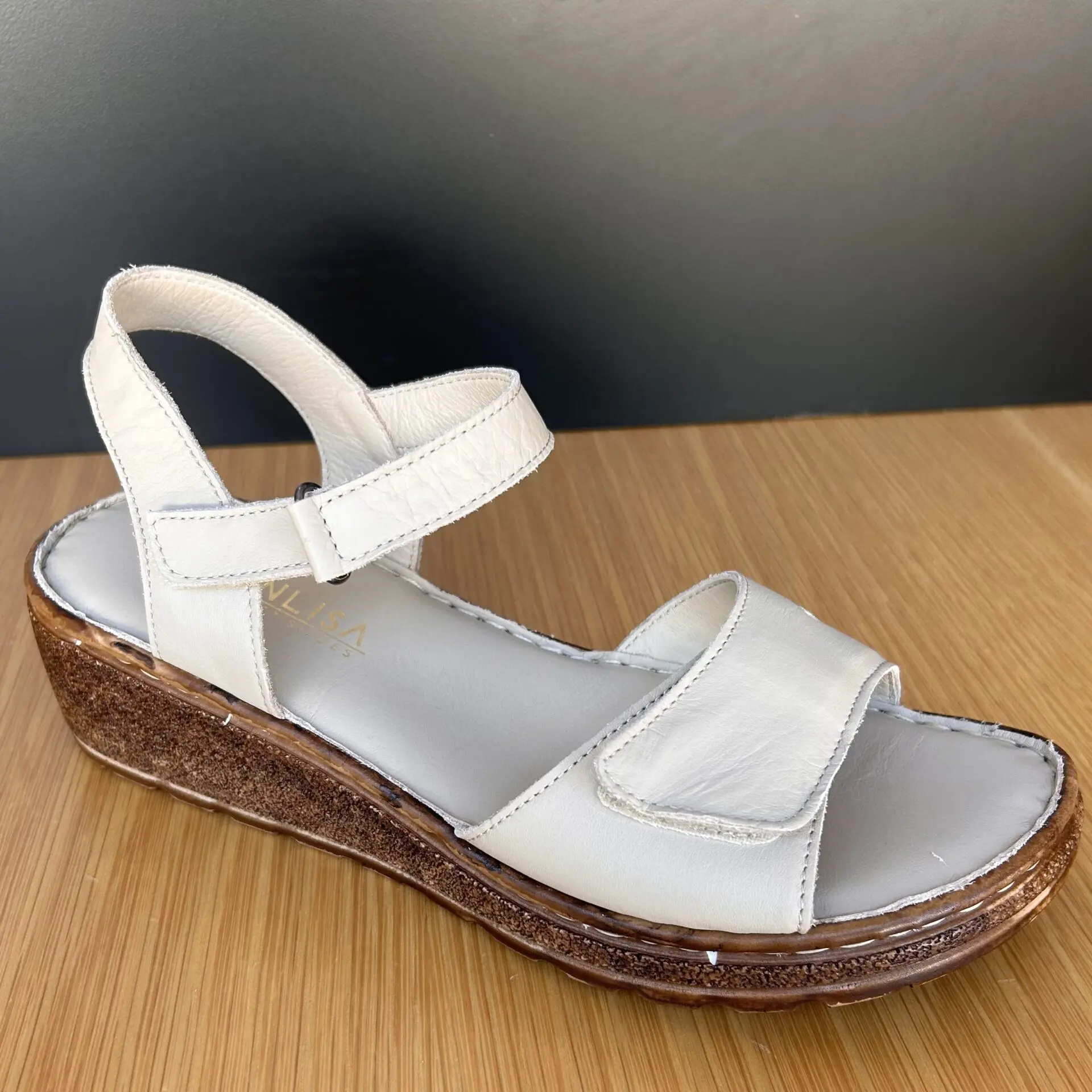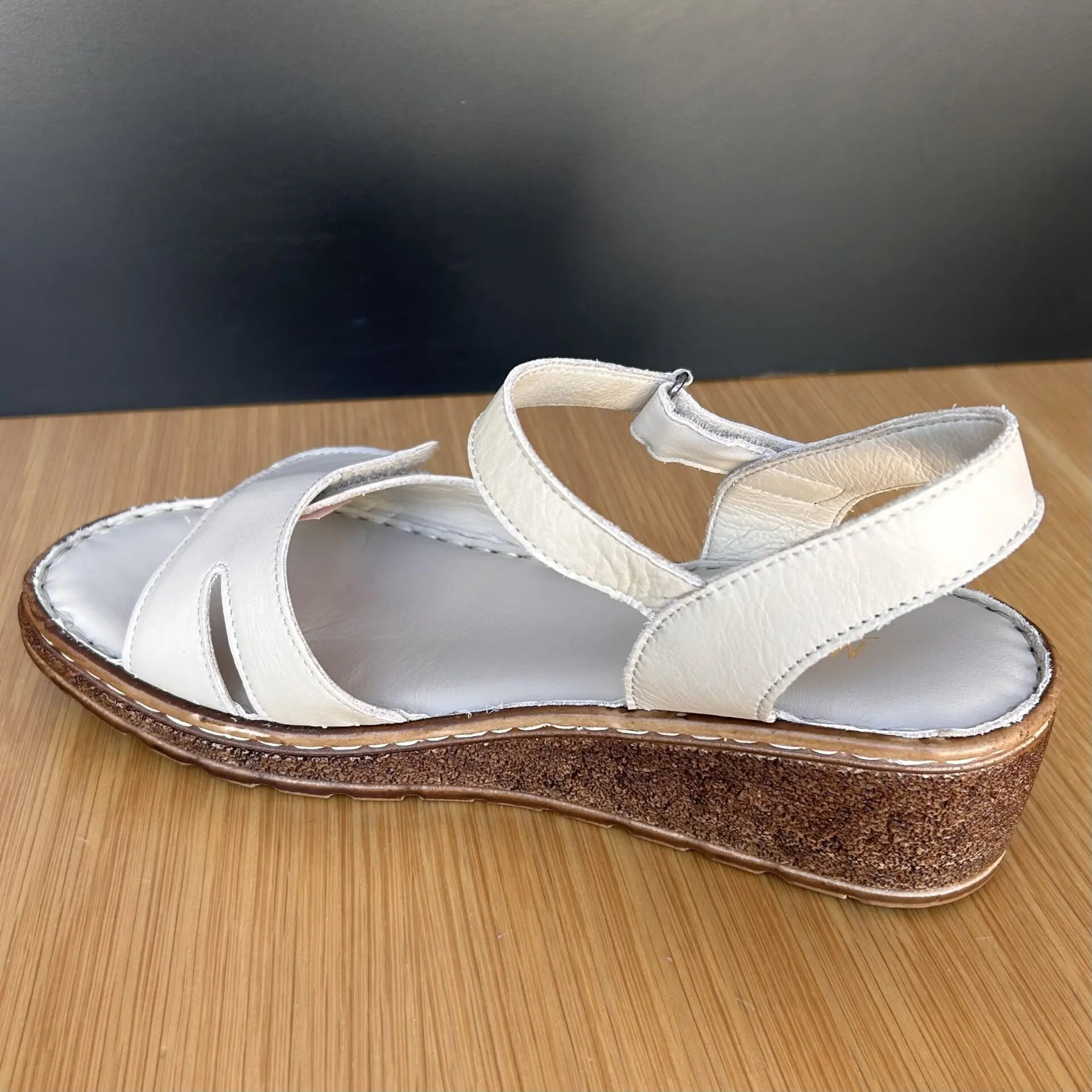 La sandalia blanca de piel con cuña es la opción perfecta para quienes buscan comodidad y estilo en su día a día.