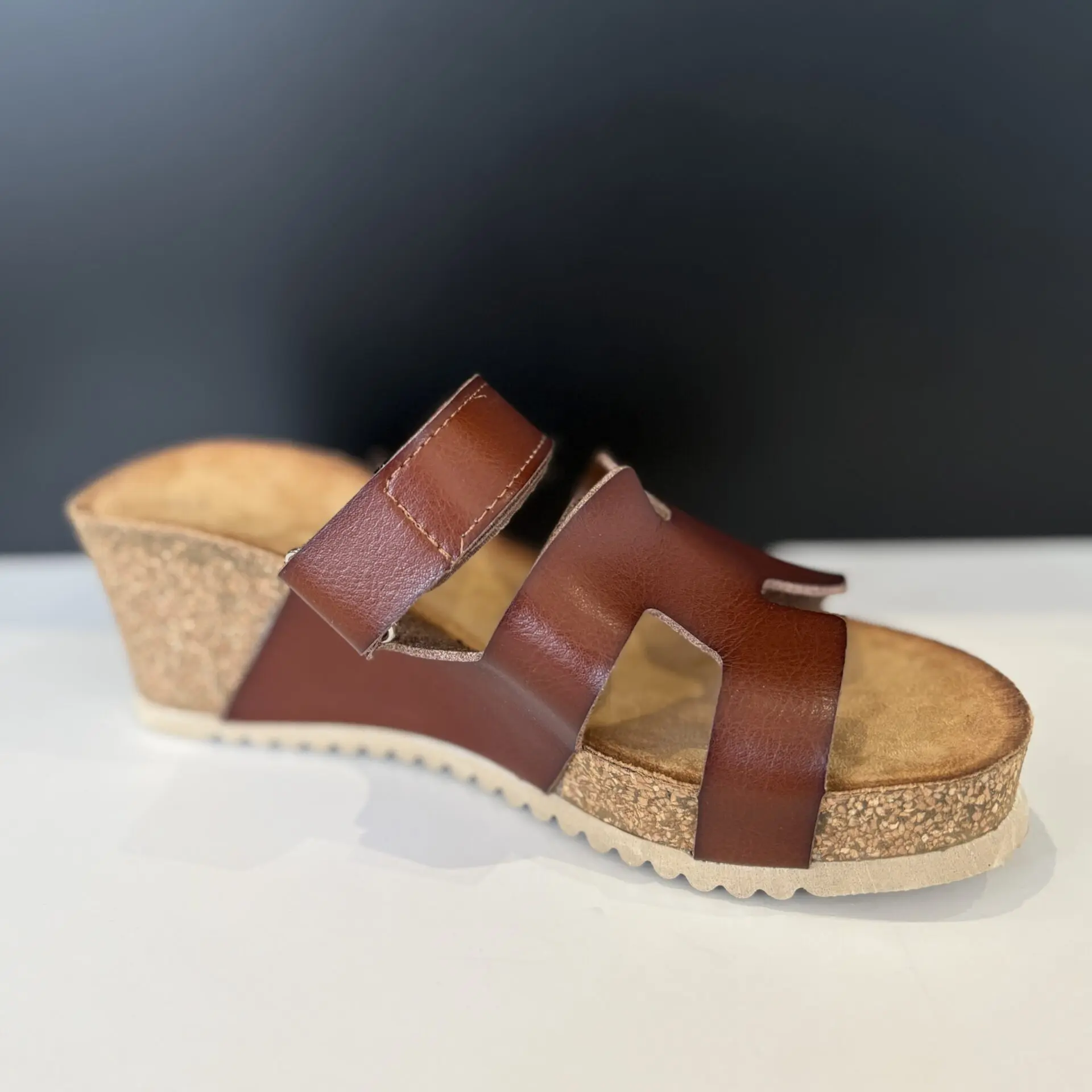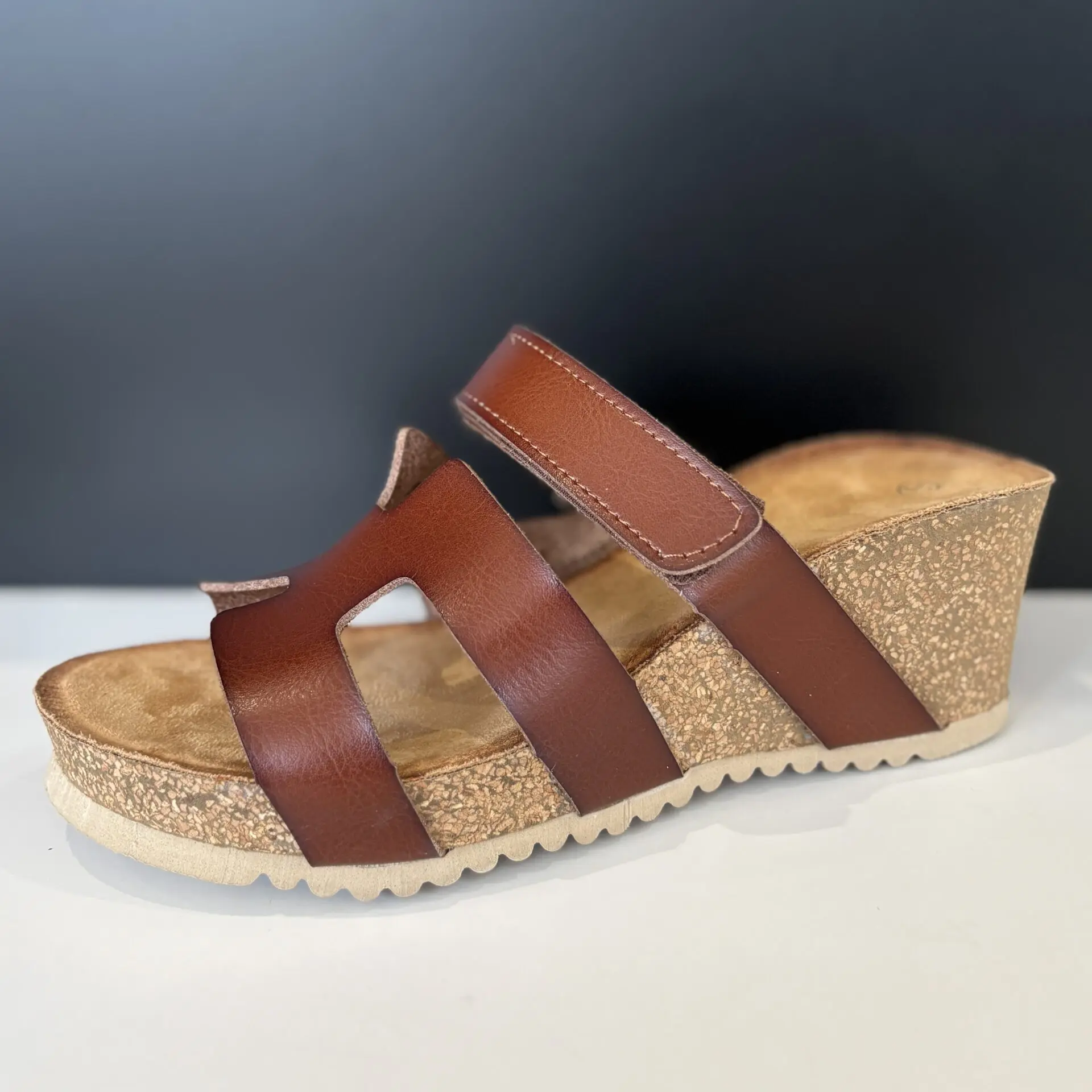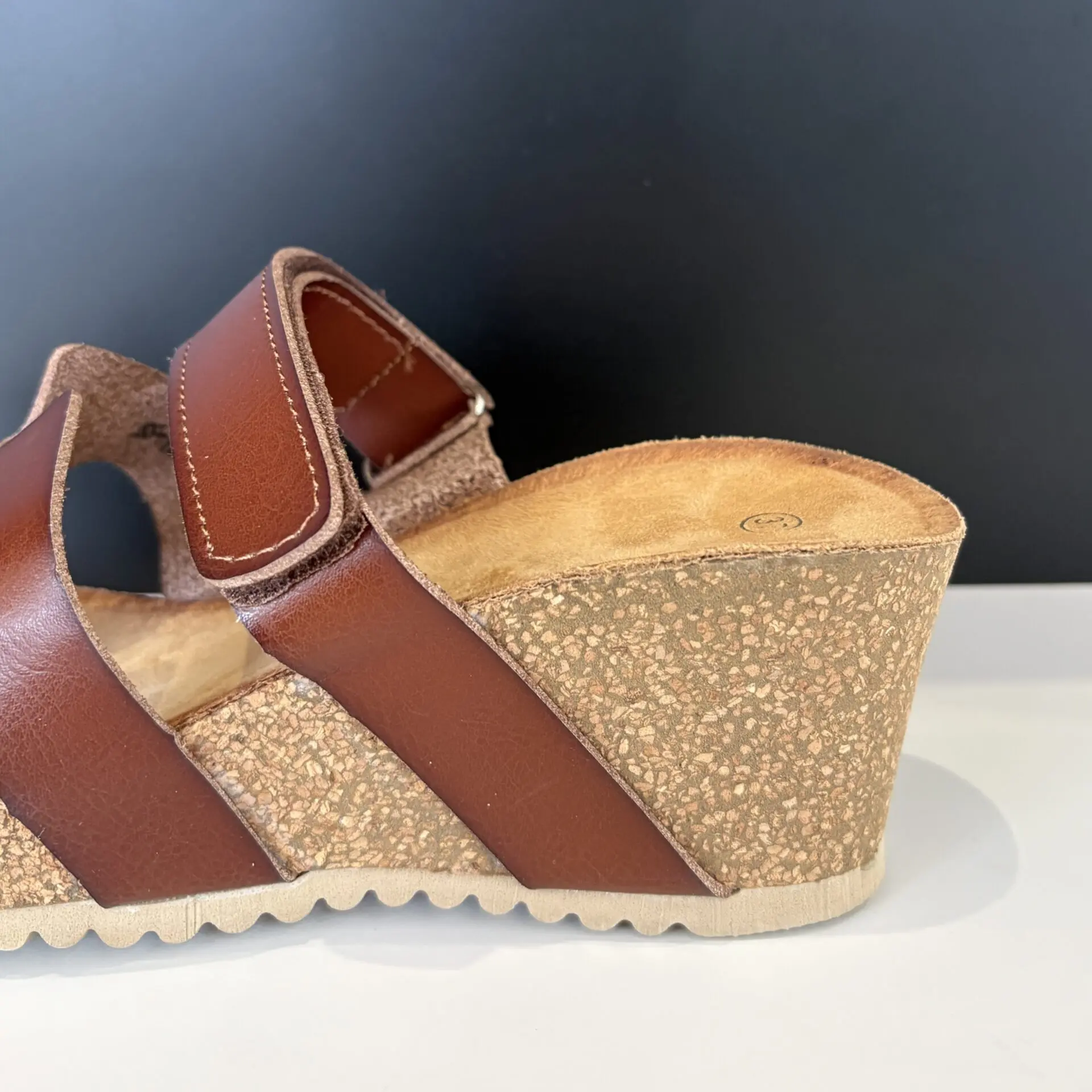 La sandalia con cuña marrón es una opción cómoda y versátil para el verano. Su diseño de tiras anchas en tono cuero aporta un estilo natural y fácil de combinar, ideal para looks casuales y relajados.