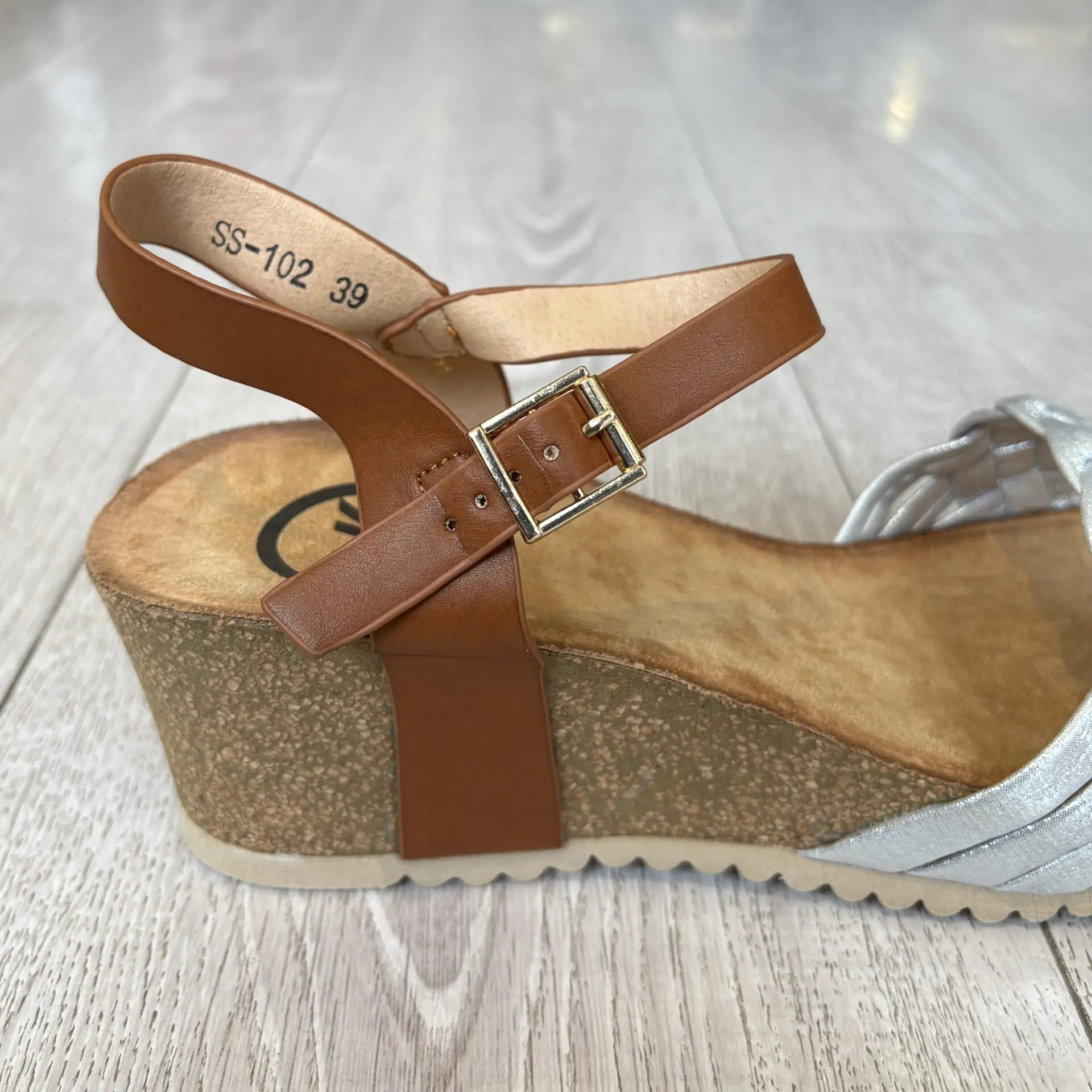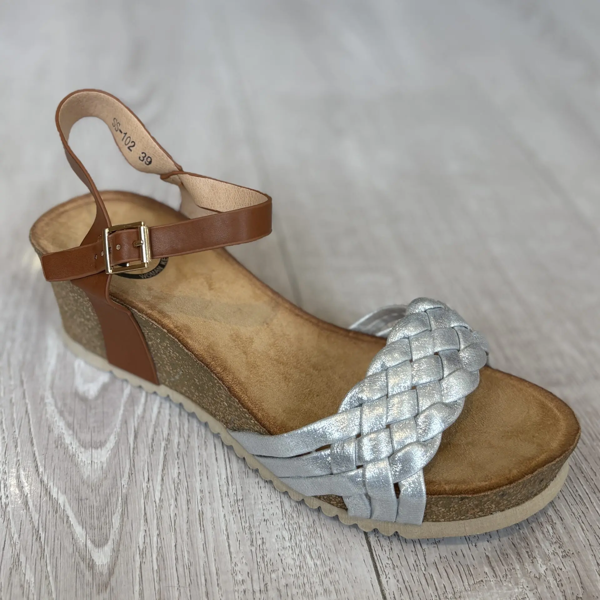 SANDALIA DE CUÑA PLATEADA SS-102