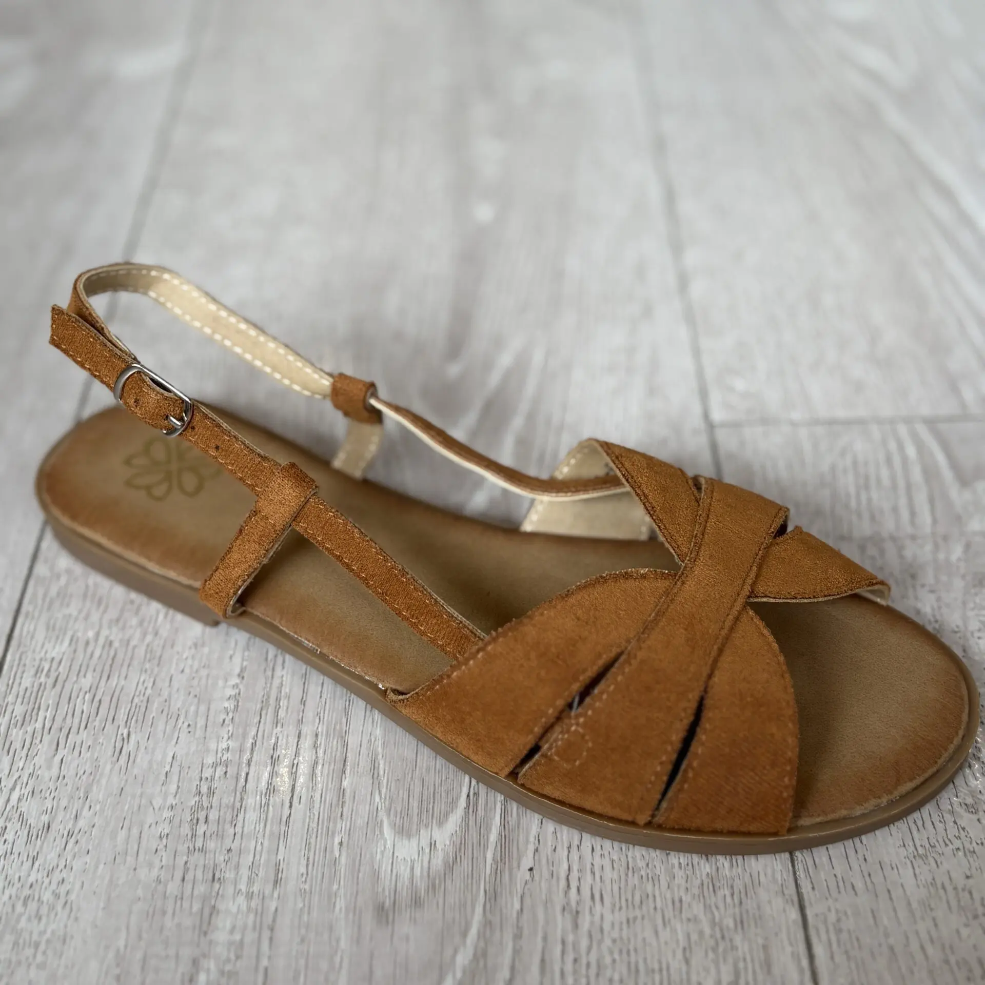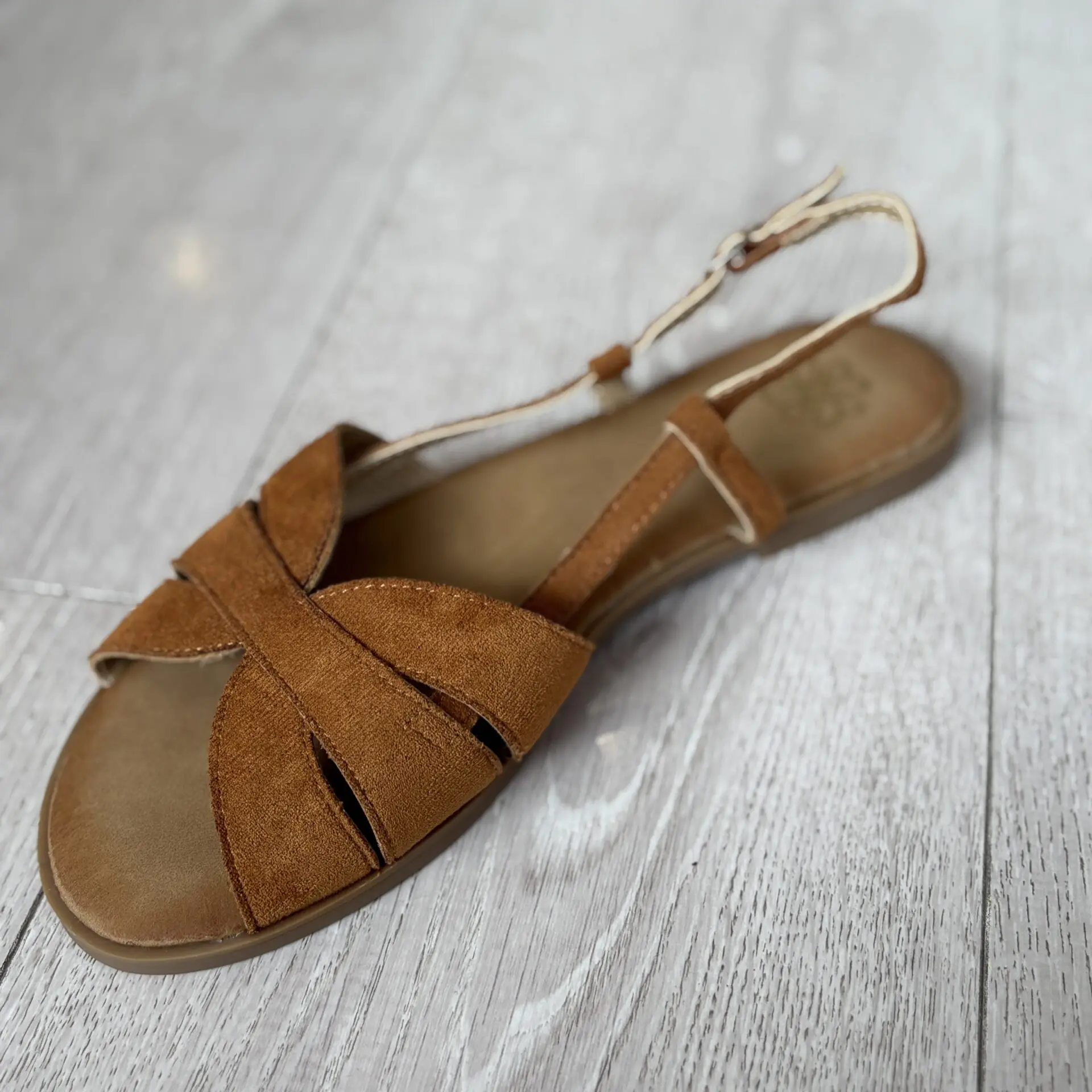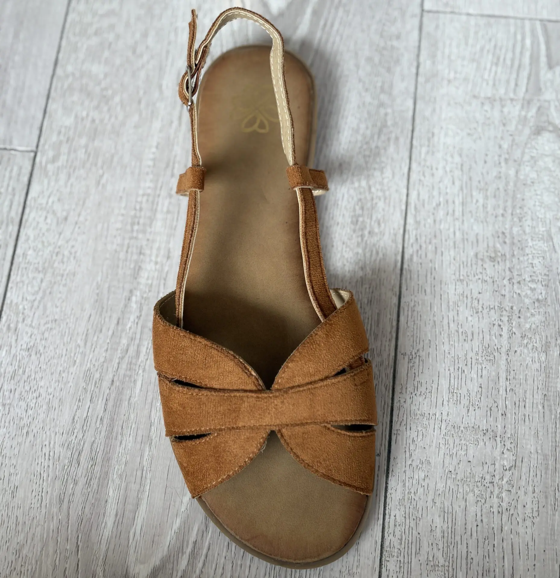 La sandalia plana en color cuero es un básico imprescindible para el verano, perfecta para quienes buscan comodidad sin renunciar al estilo.