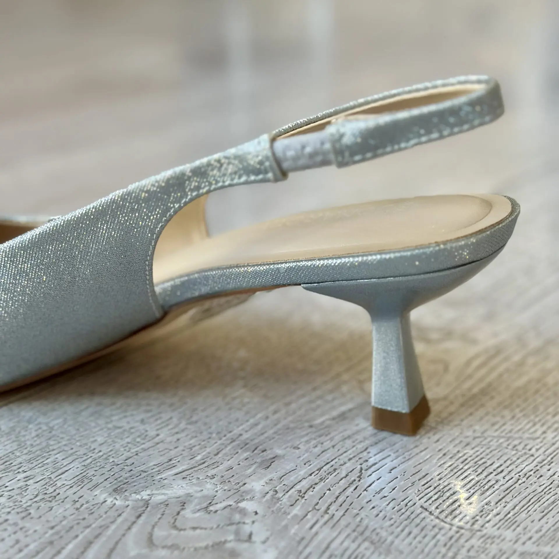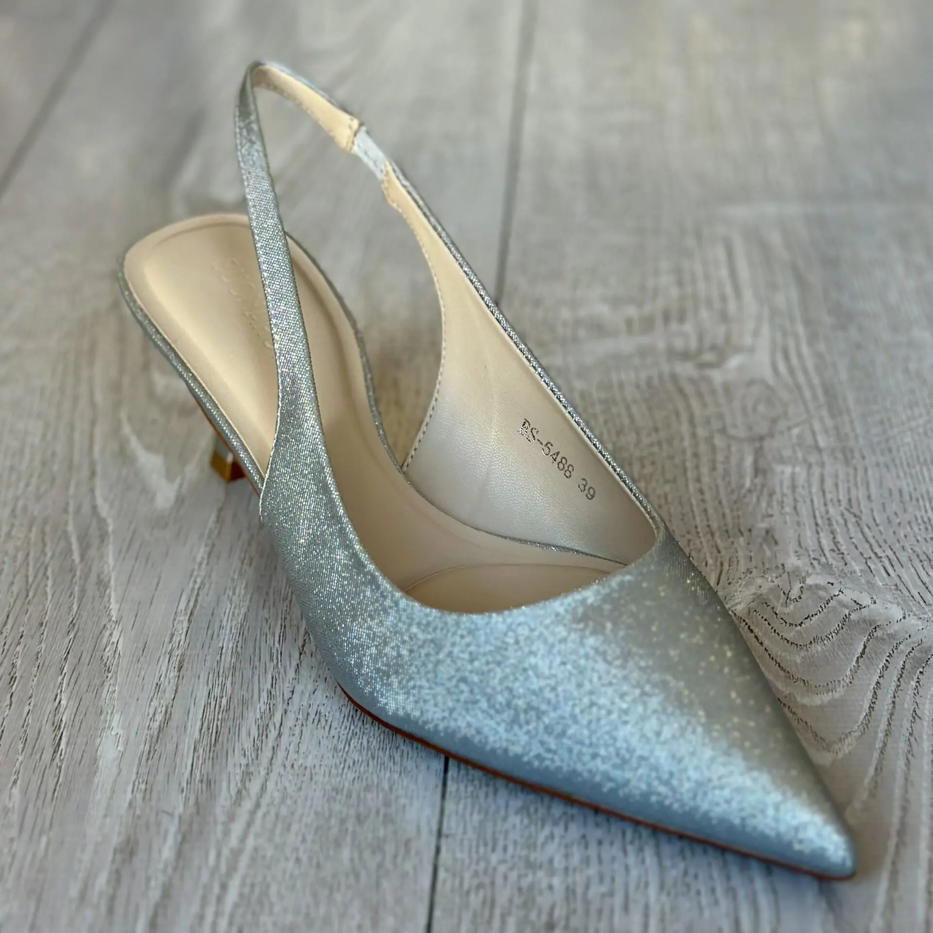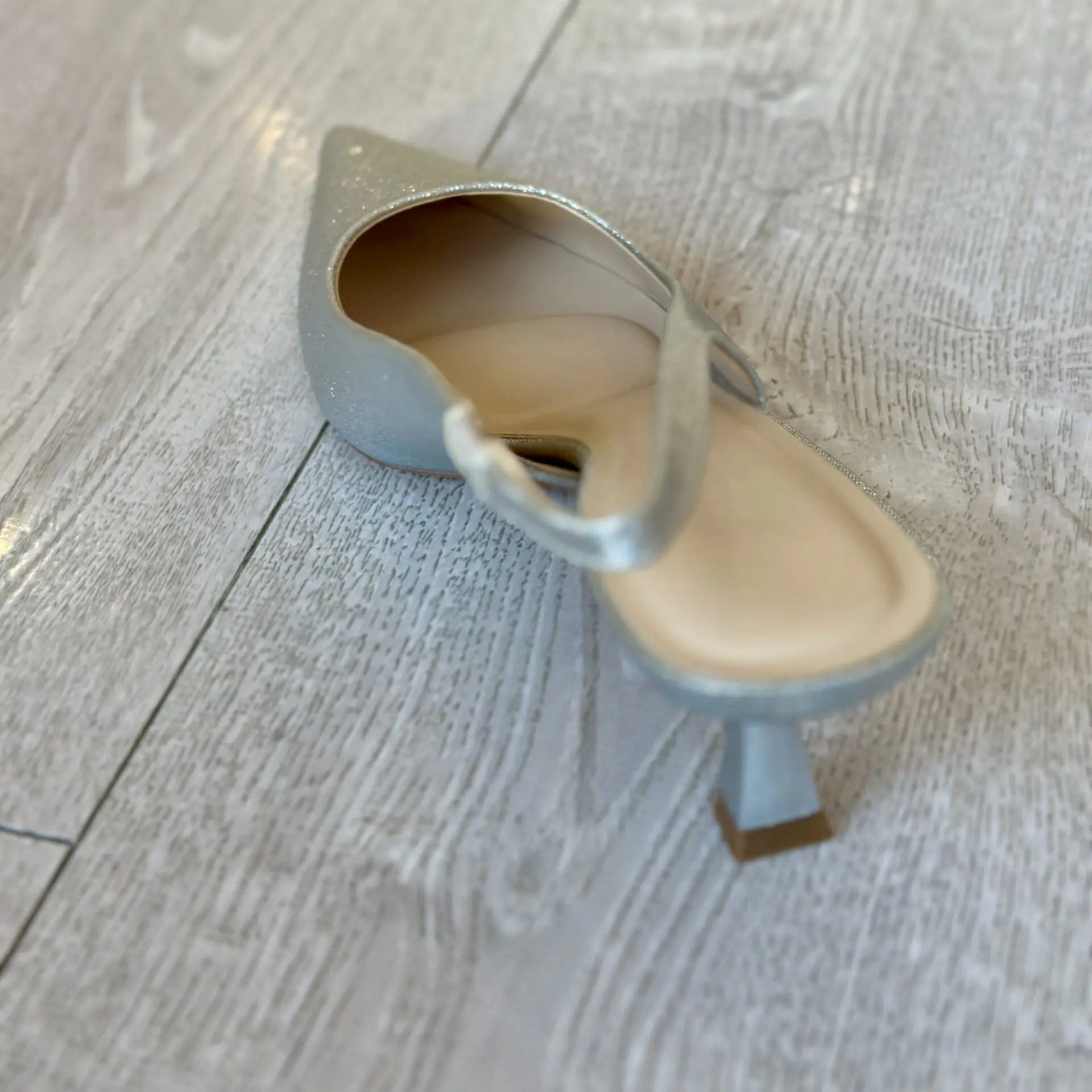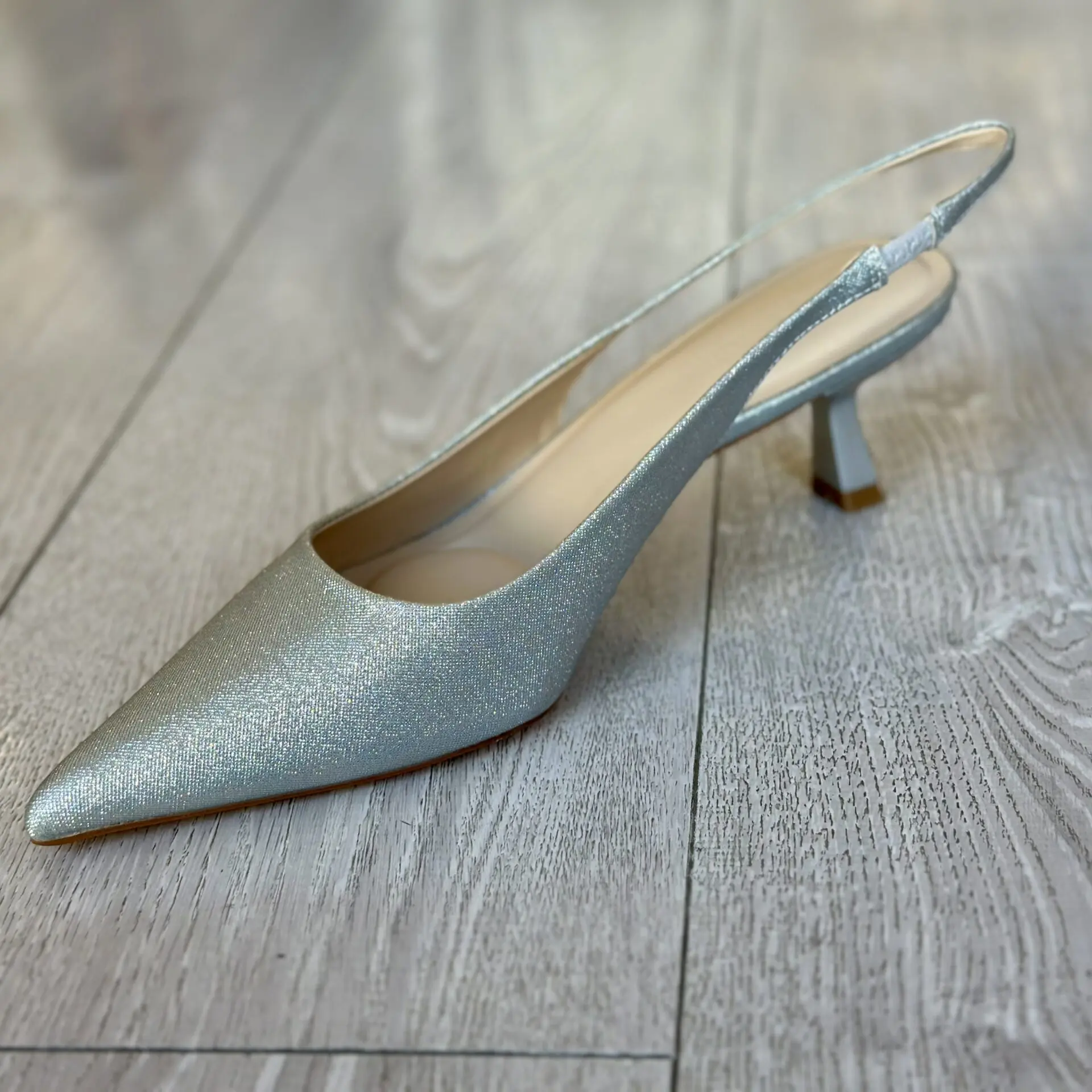 El zapato destalonado en color plata es la elección ideal para aportar luz y sofisticación a cualquier conjunto. Su diseño de punta fina estiliza la silueta del pie, mientras que su acabado metalizado en tono plateado lo convierte en el aliado perfecto para eventos, celebraciones o looks más especiales.