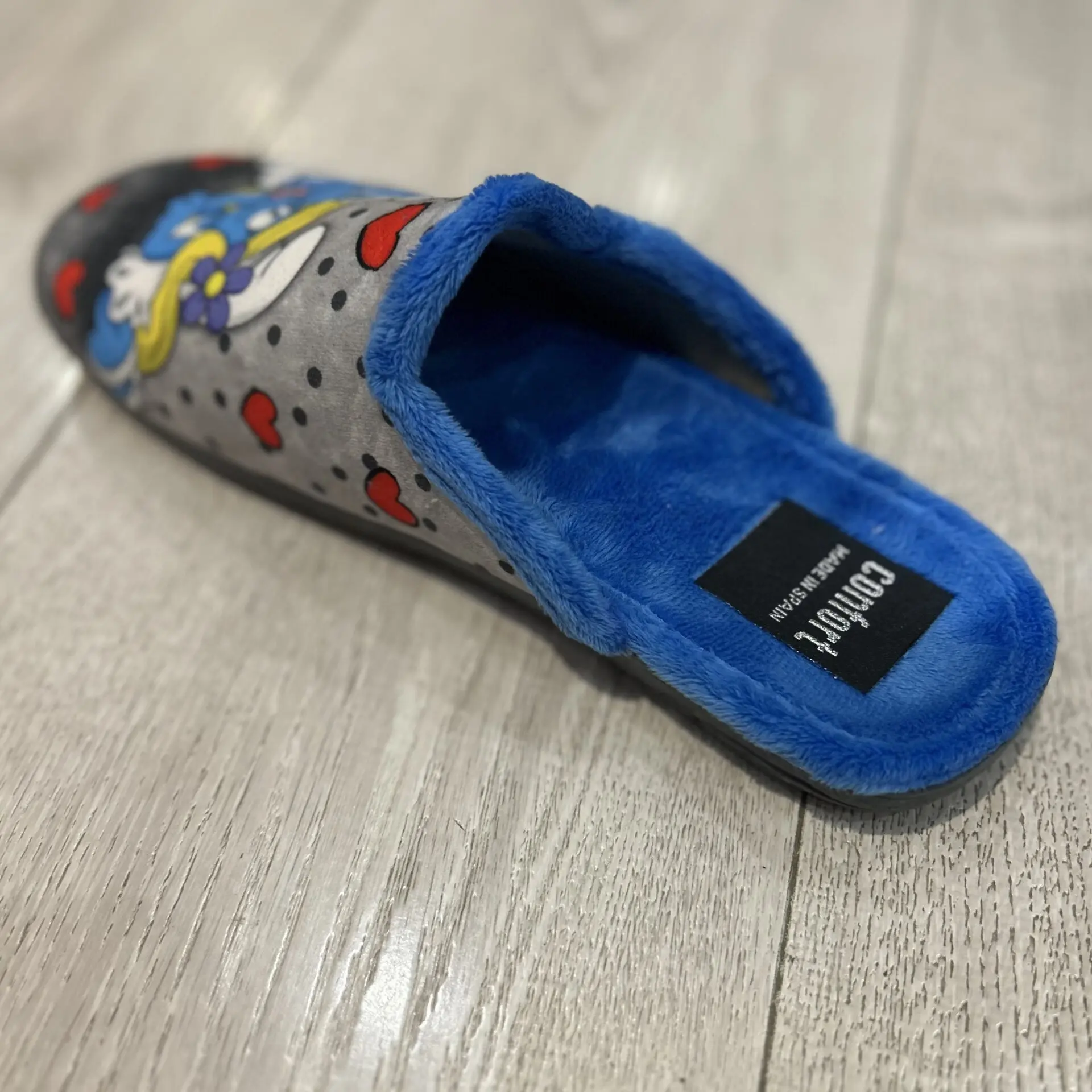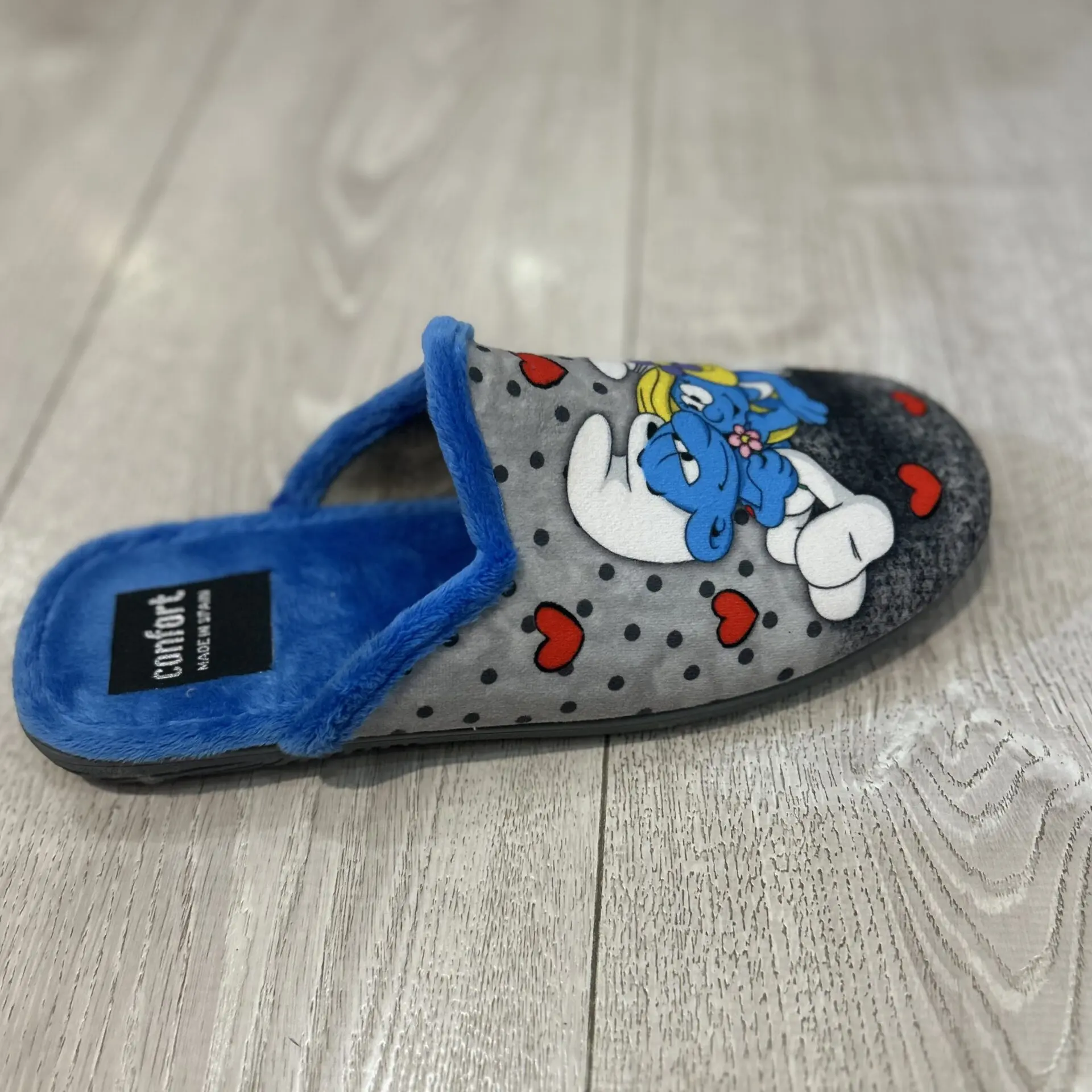 Zapatilla de casa de Los Pitufos, cómoda, calentita y con suela antideslizante. Ideal para estar en casa con estilo.