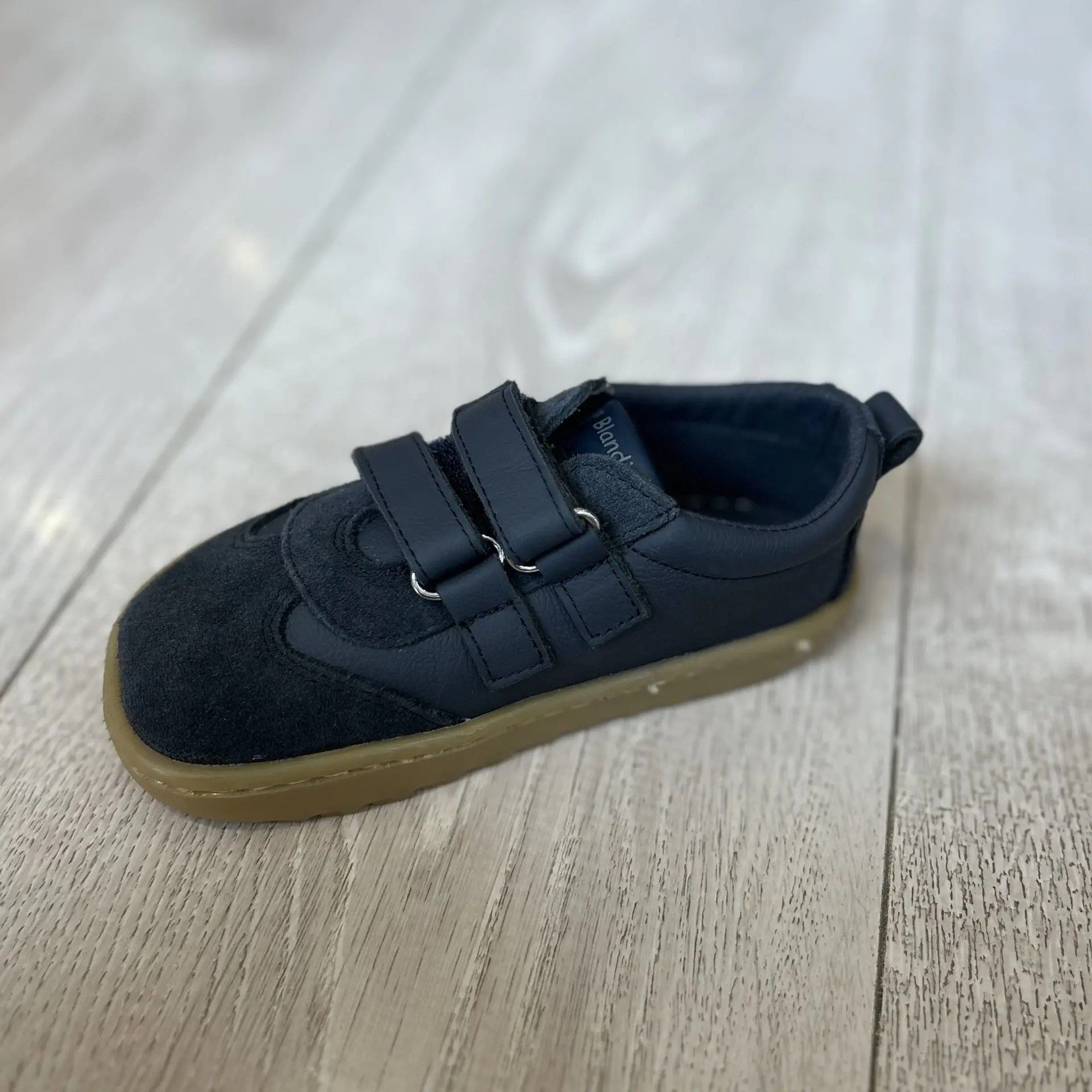 Zapatilla infantil en color azul marino, con doble cierre de velcro para un ajuste fácil y seguro. Un modelo cómodo y resistente, ideal para el día a día de los más peques, tanto para el cole como para jugar.