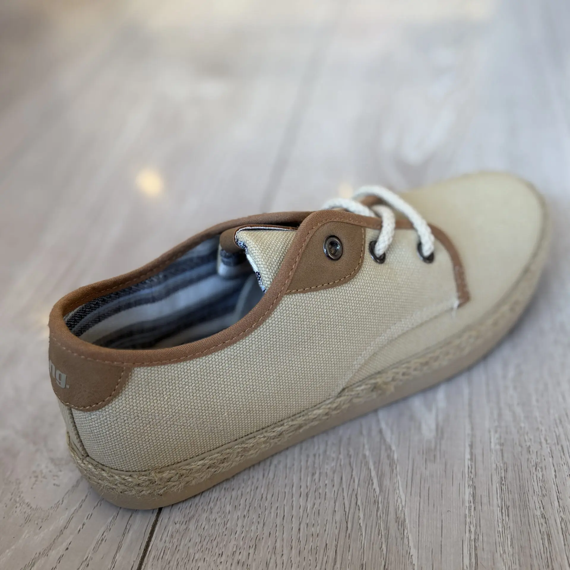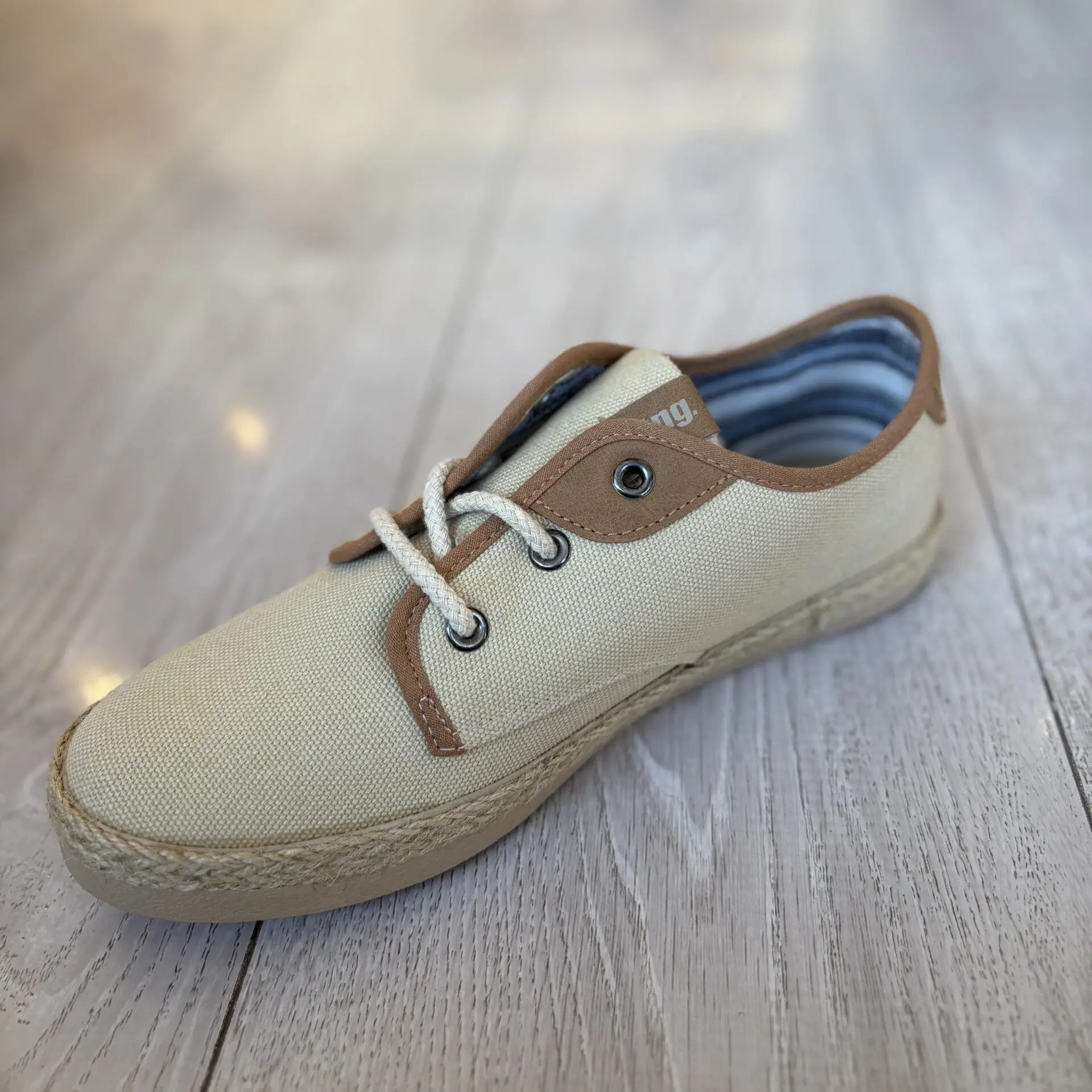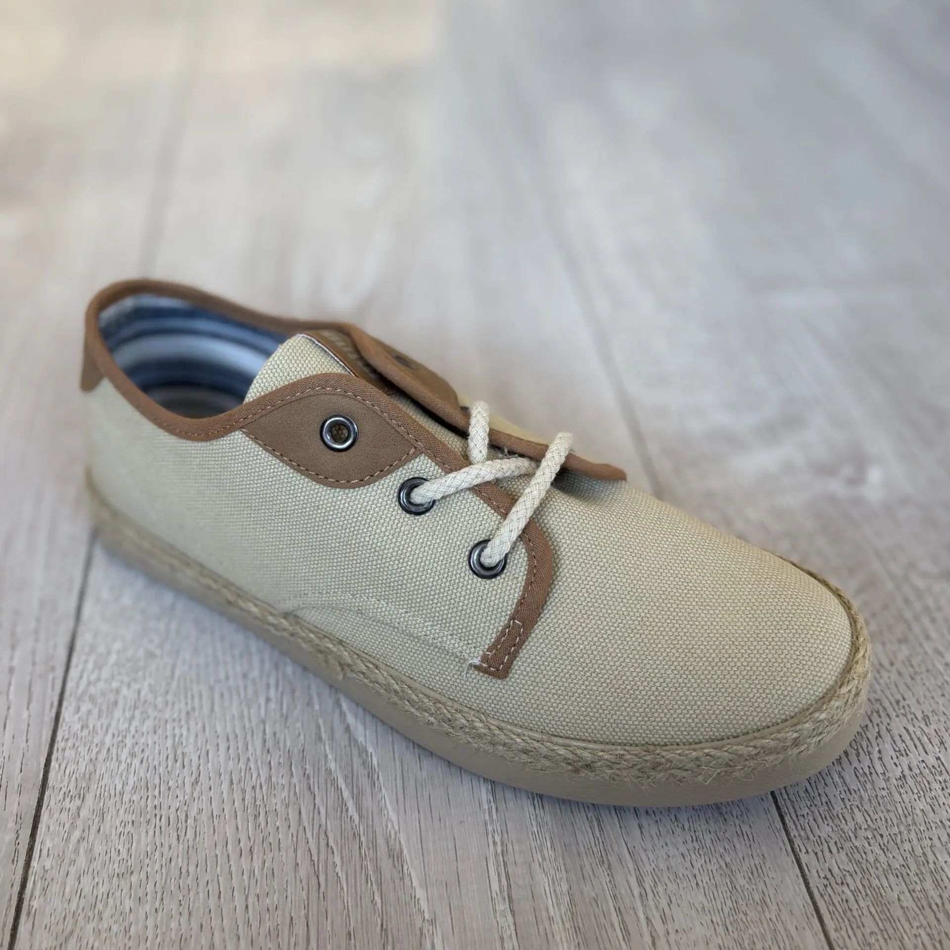 Zapato infantil beige con cordones y suela con detalle de yute. Ligero, cómodo y perfecto para el día a día.