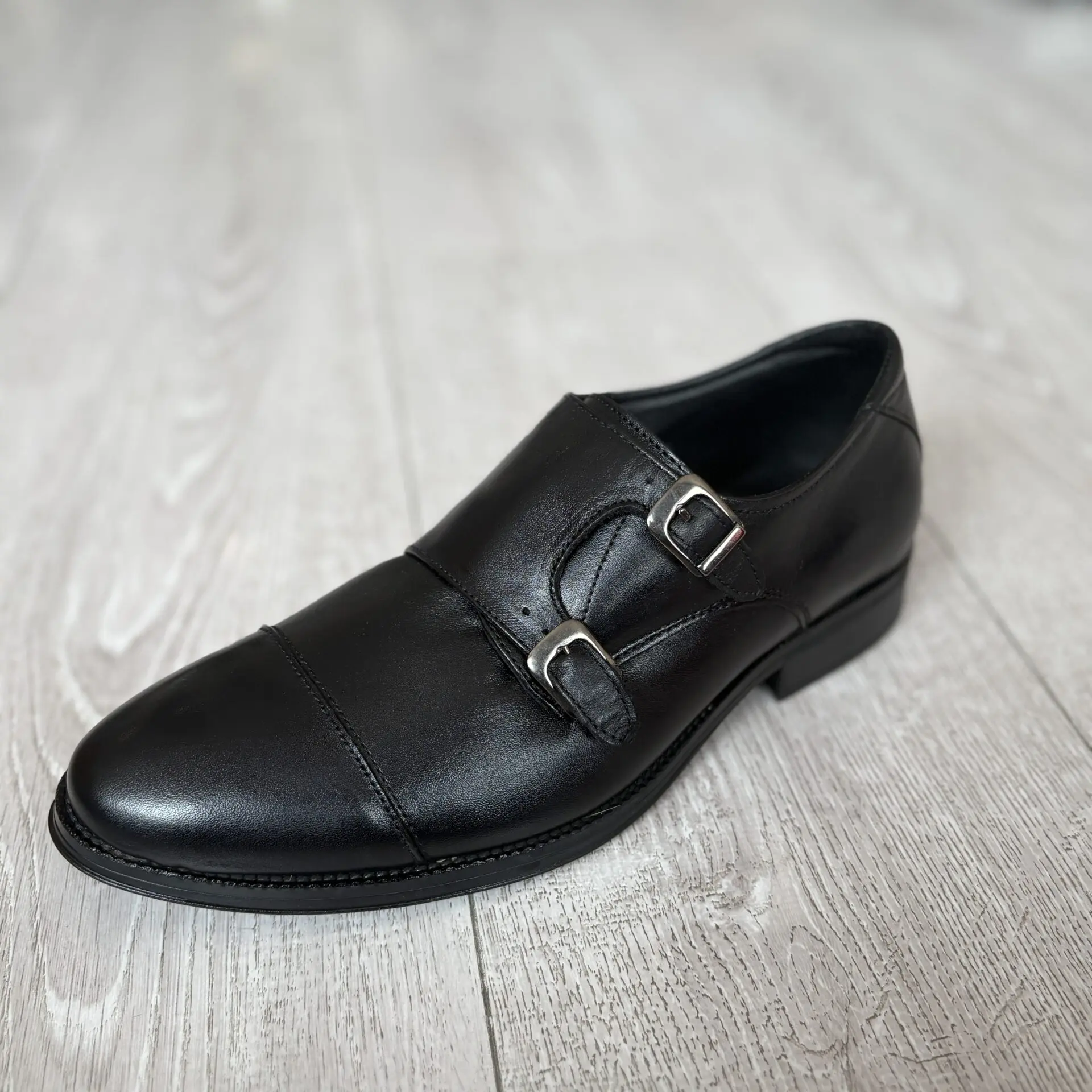 El zapato de vestir negro con doble hebilla es un modelo elegante y sofisticado, ideal para hombres que buscan un estilo distinguido en ocasiones formales. Su diseño tipo monk strap doble aporta un toque moderno sin perder la esencia clásica.