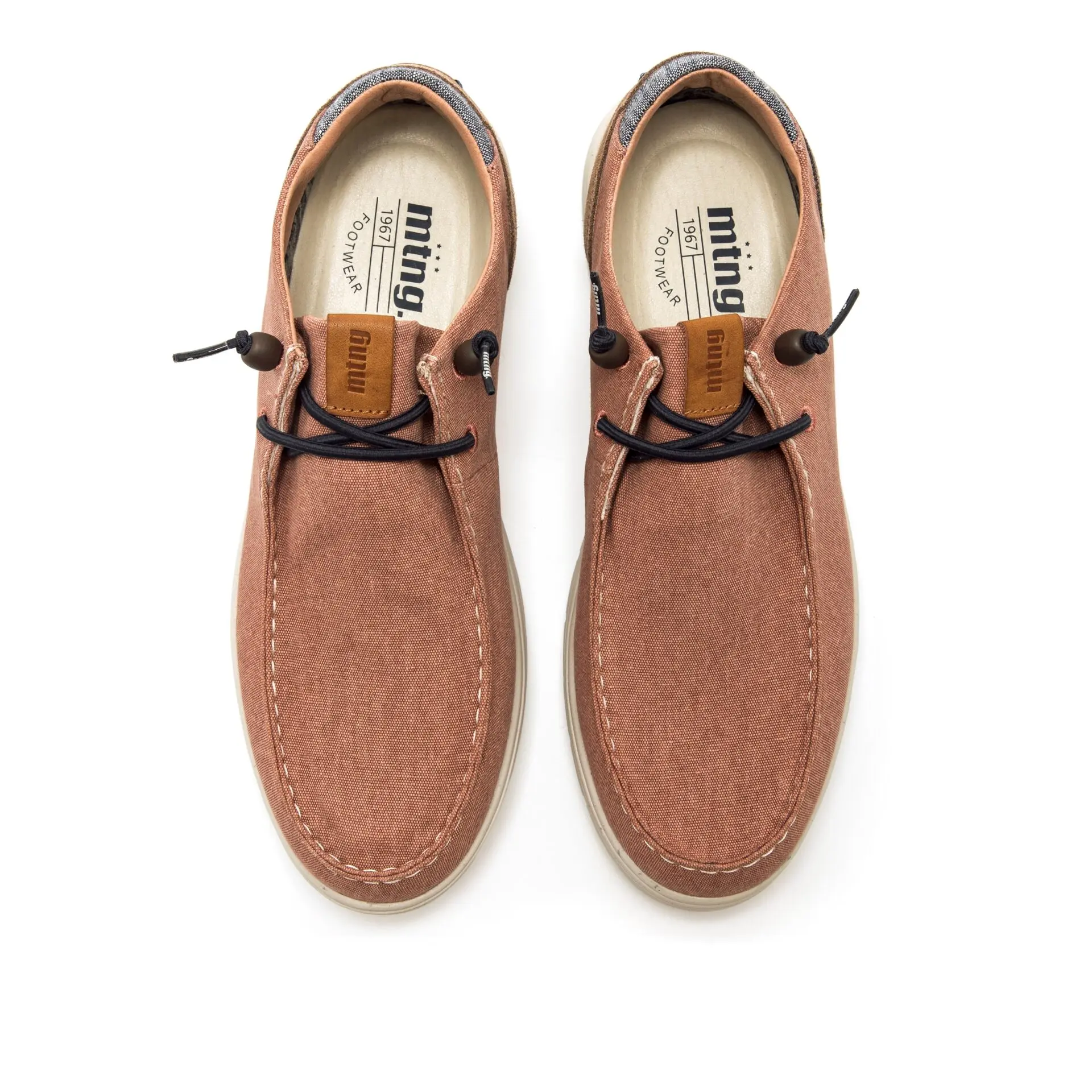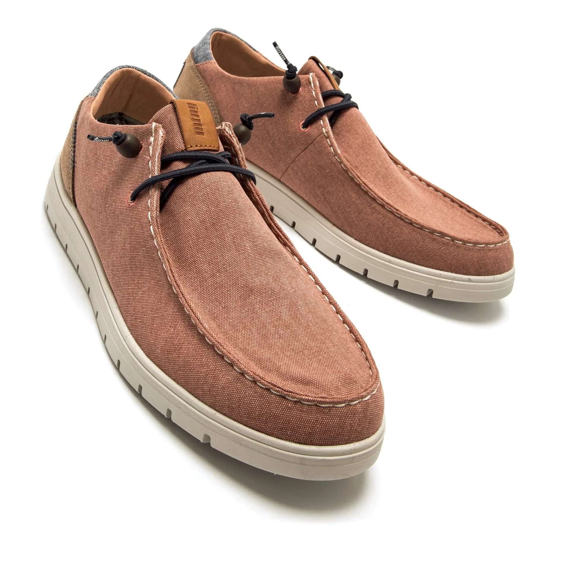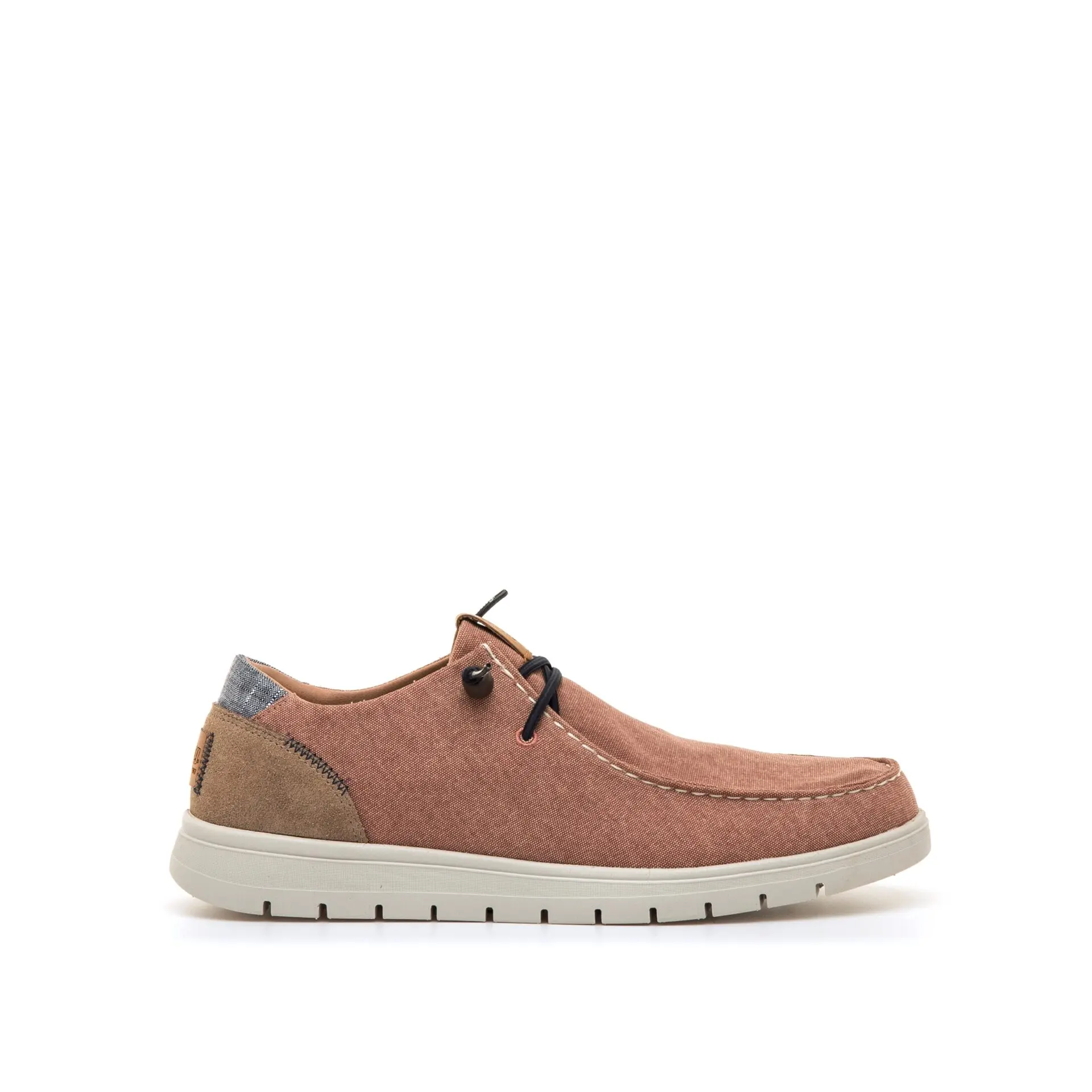 Está confeccionado en material textil ligero que favorece la transpiración y proporciona una sensación agradable durante todo el día. Los cordones decorativos en tono cuero aportan un contraste elegante que realza su estilo casual.